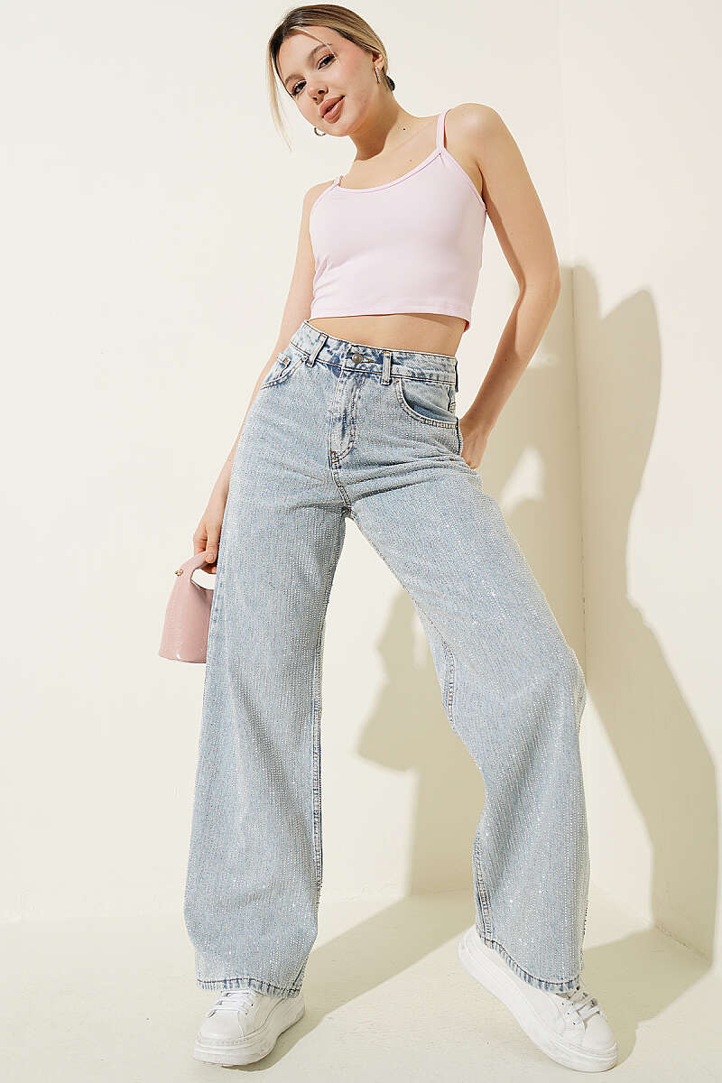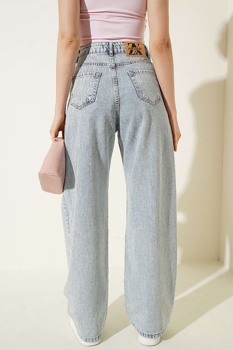 Su Yolu Taş Detaylı Kot Pantolon Açık Kar