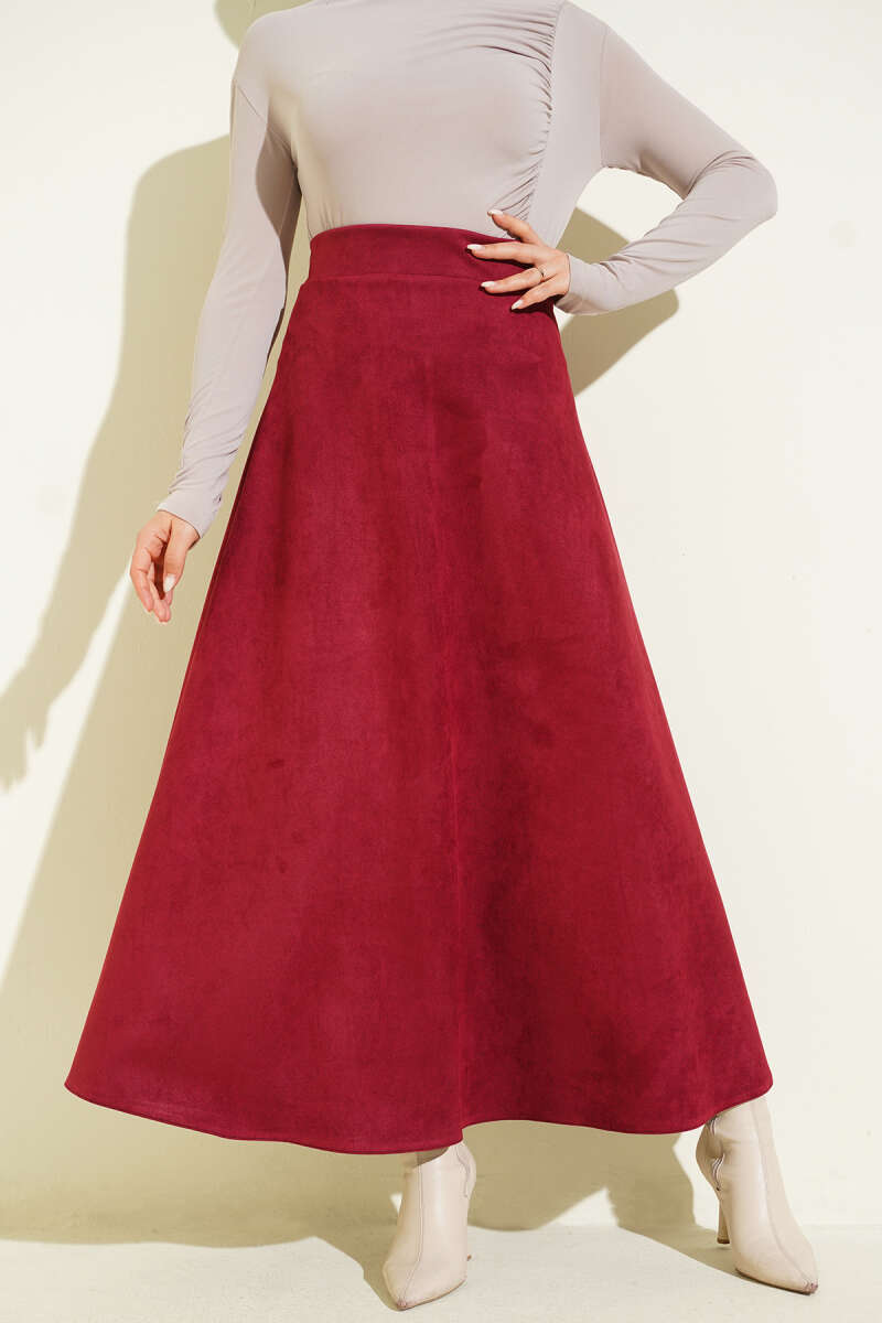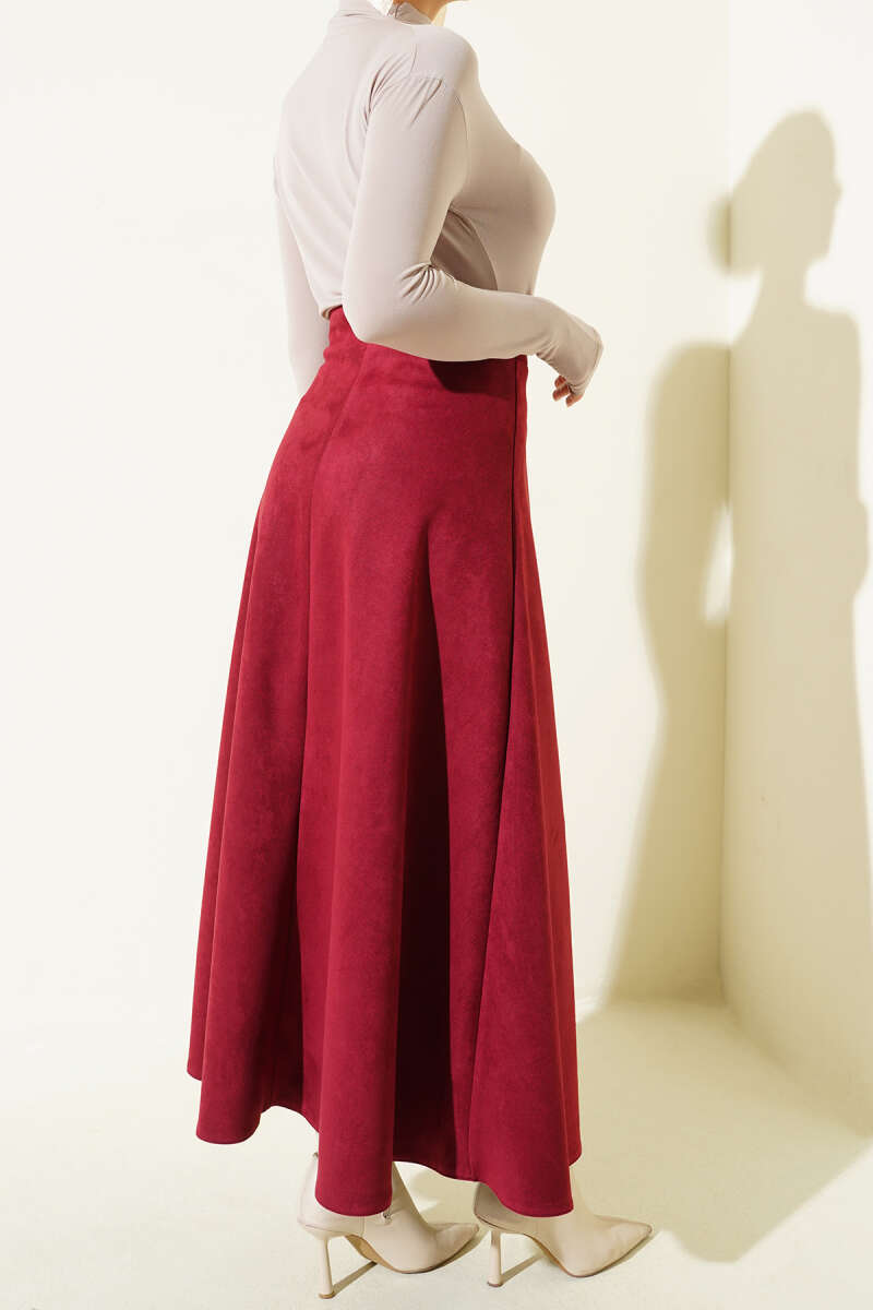 Süet Bel Fermuarlı Çan Etek Siyah