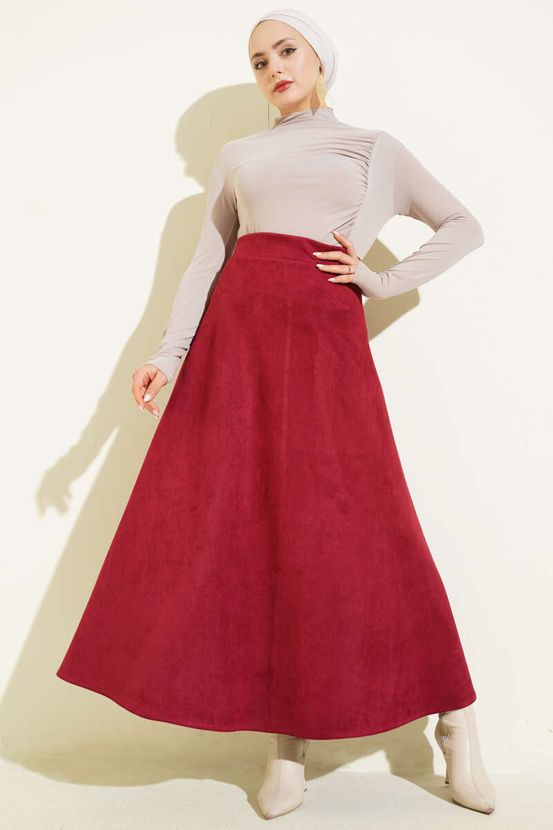 Beli Lastikli Ekose Desen Kloş Etek Bordo