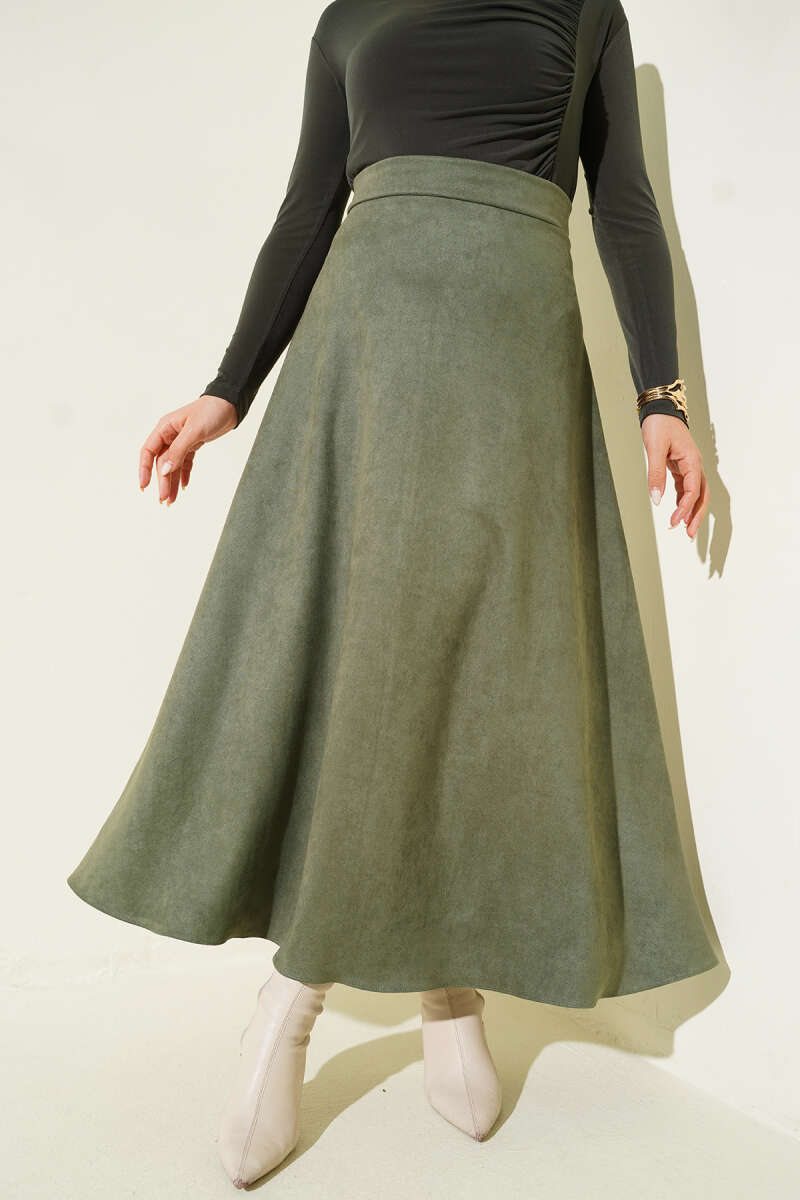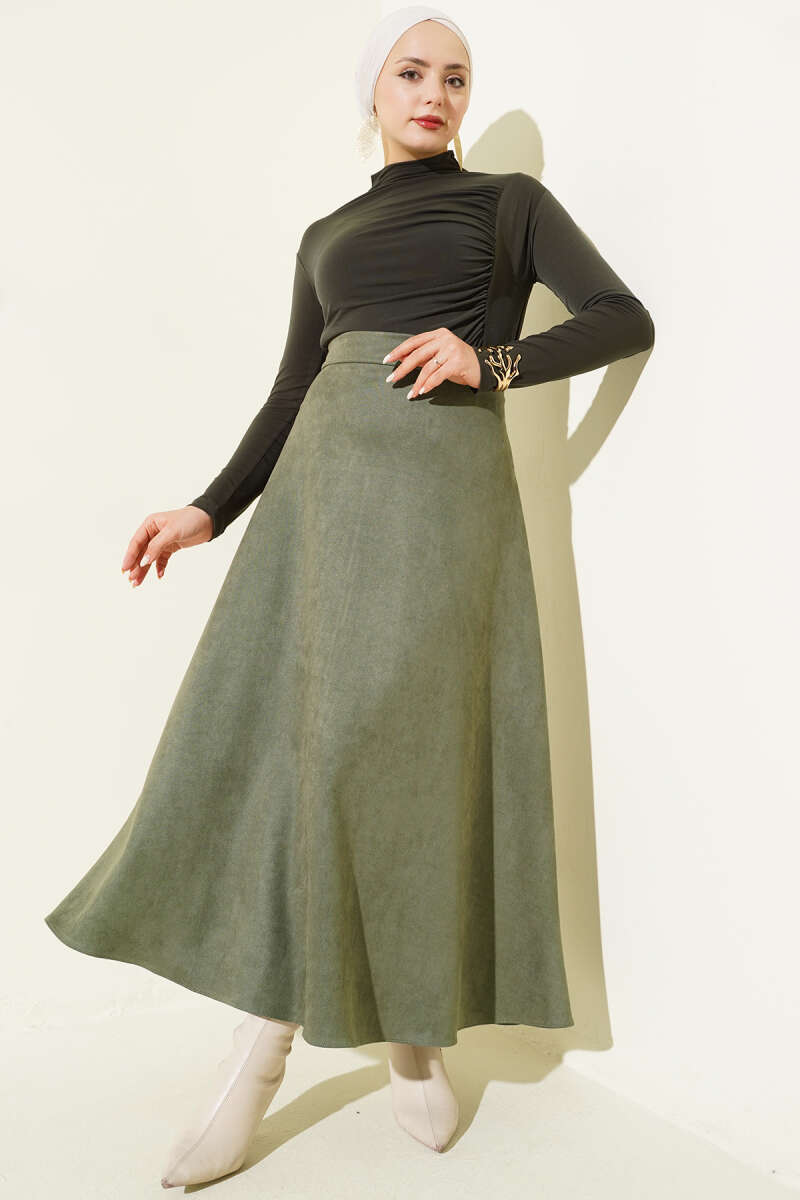 Beli Fermuarlı Ekoseli Çan Etek Haki
