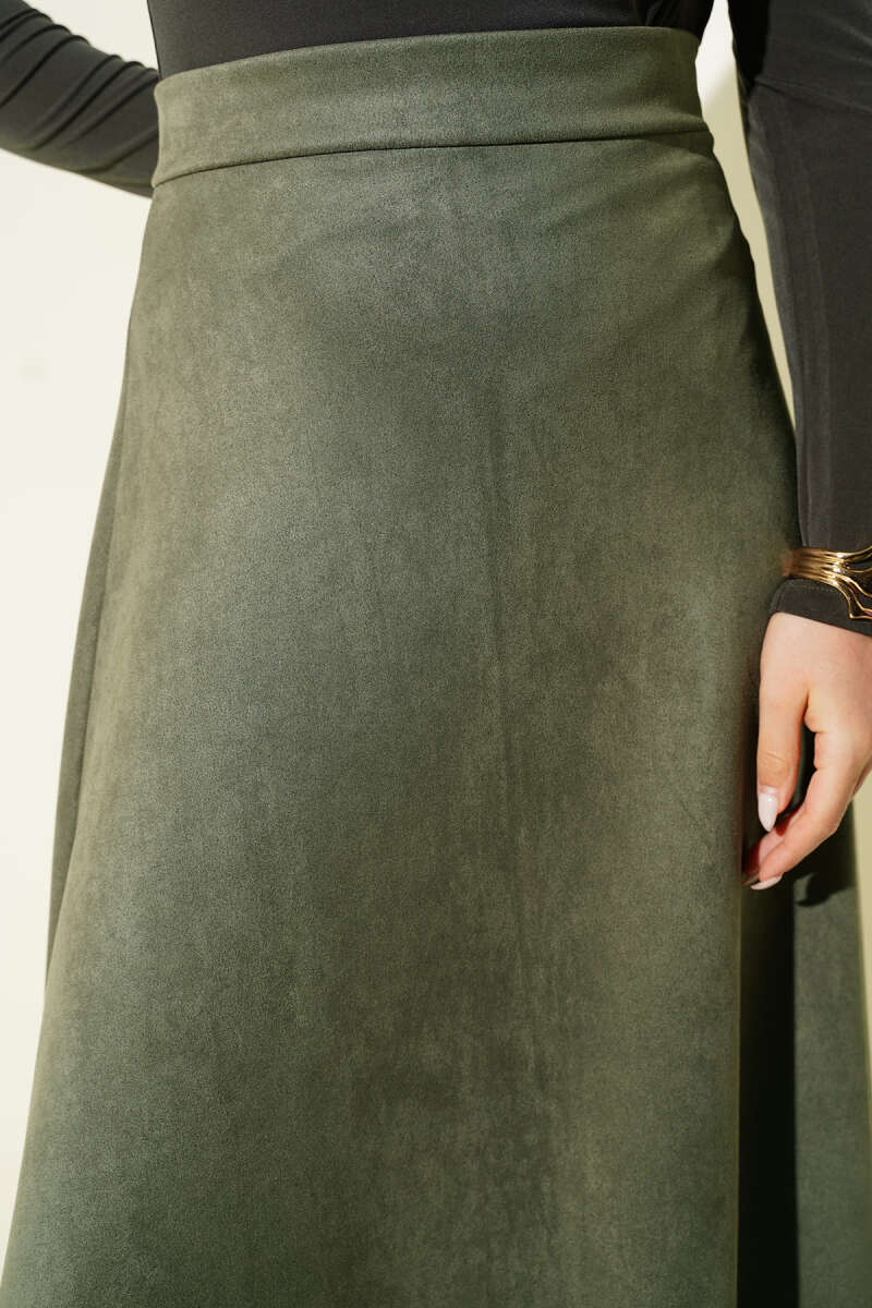Süet Bel Fermuarlı Çan Etek Siyah