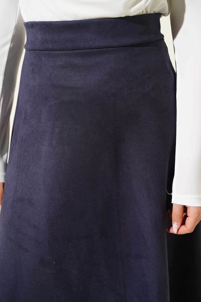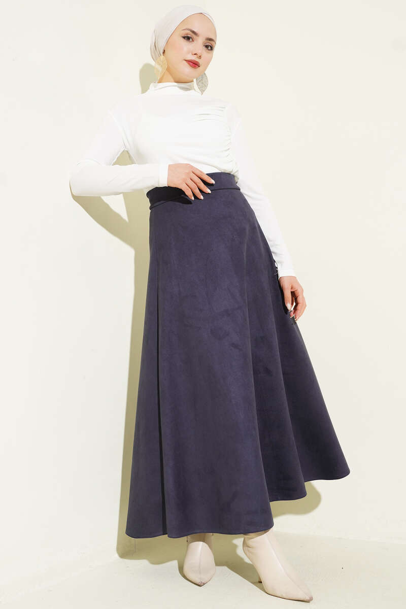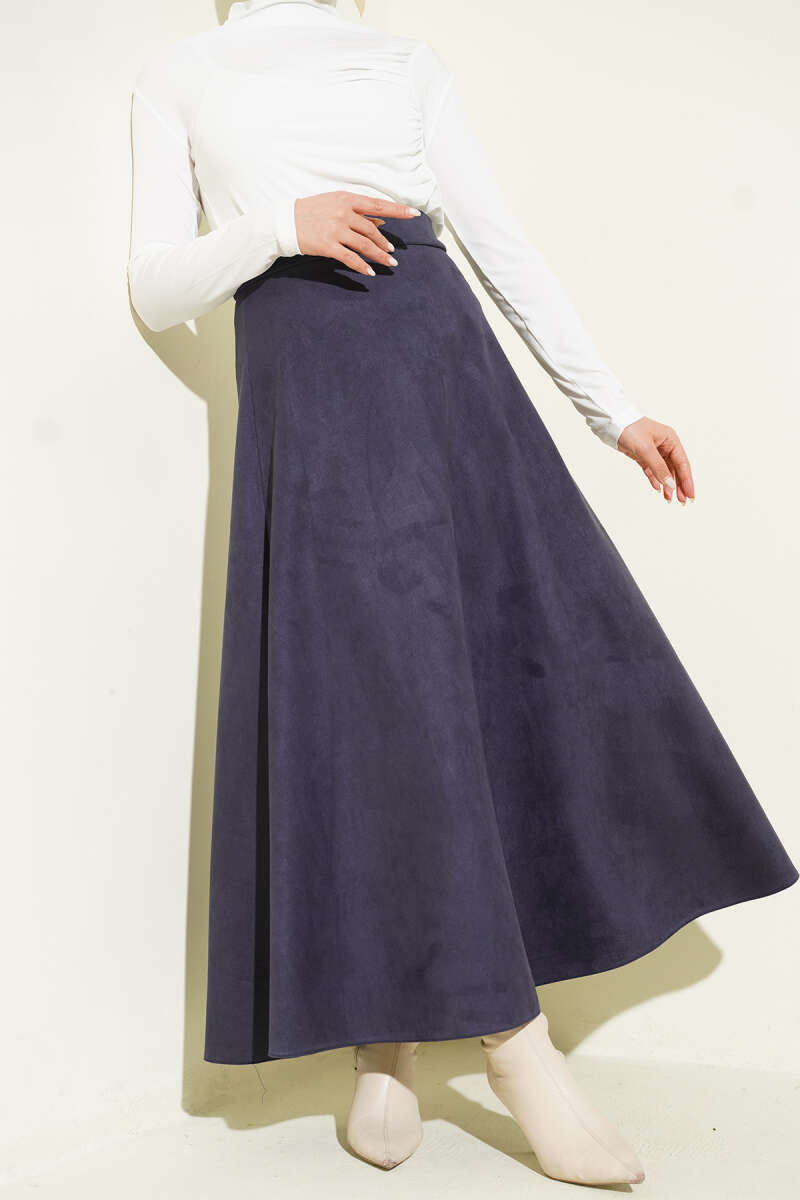 Beli Lastikli Ekose Desen Kloş Etek Lacivert