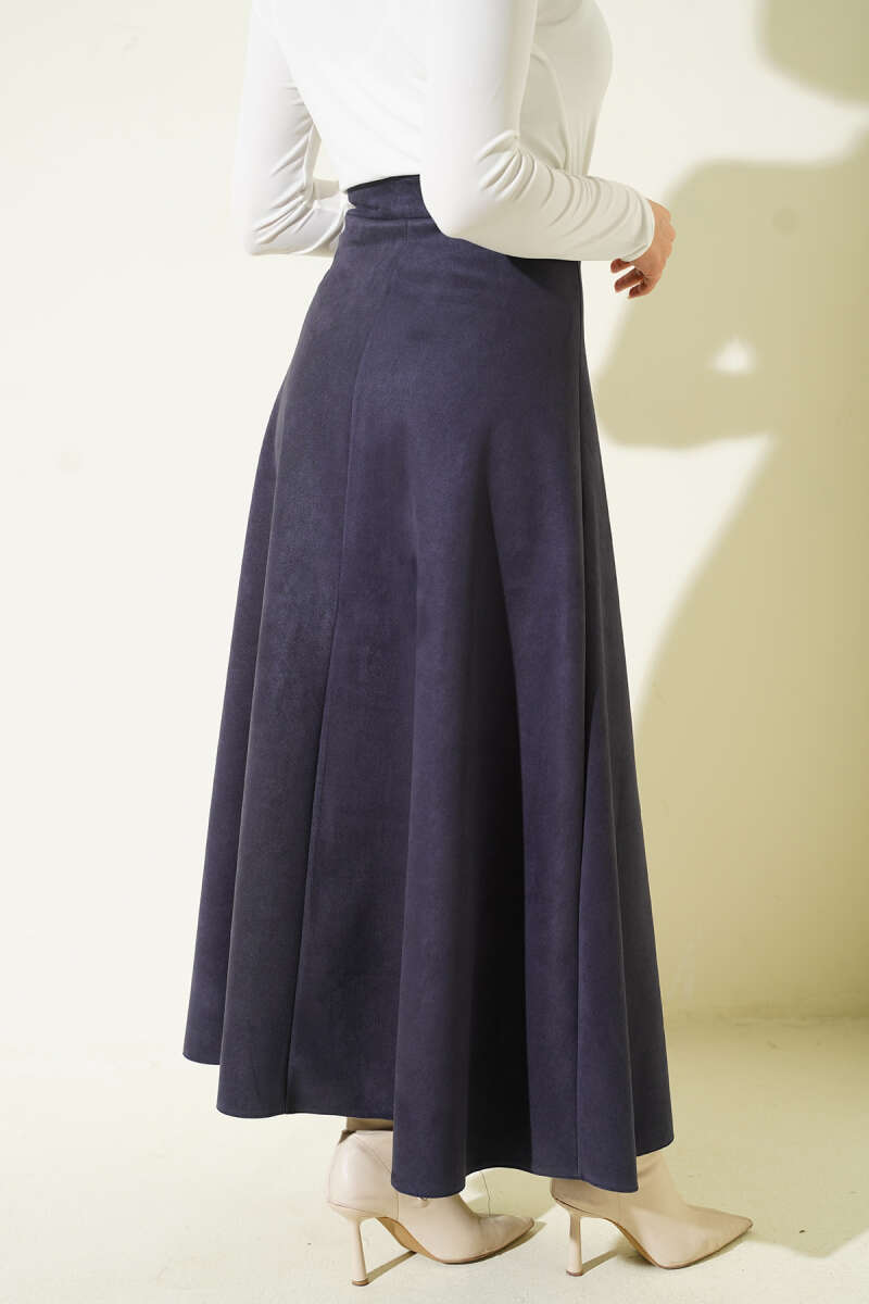Beli Fermuarlı Ekoseli Çan Etek Lacivert