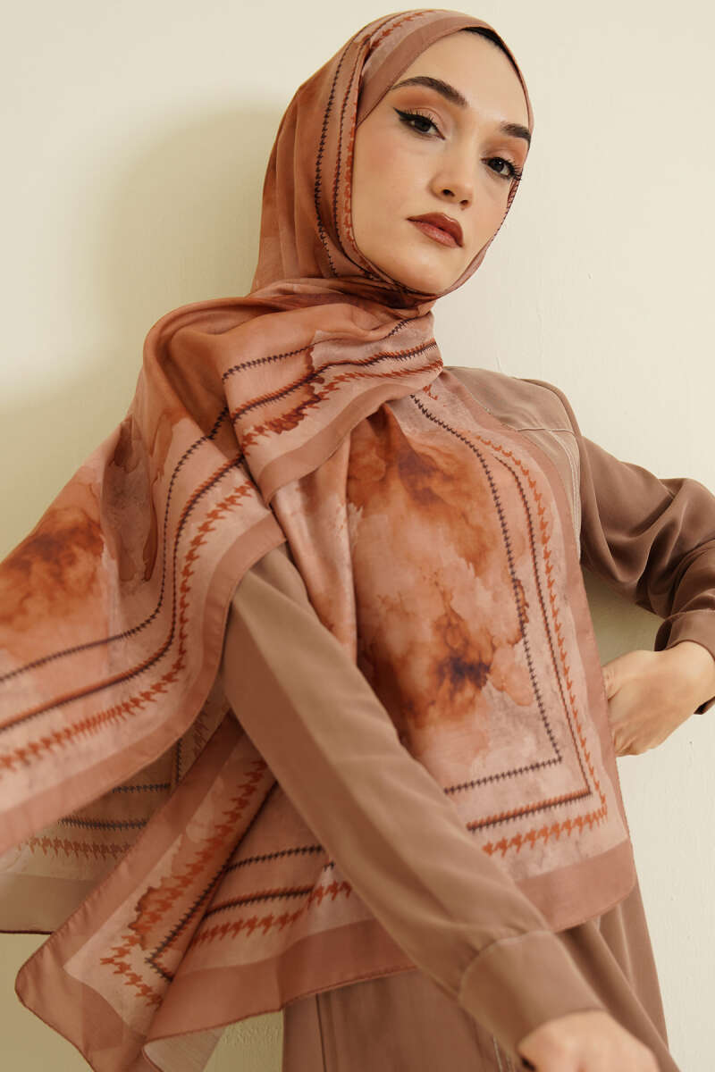 MK Desen Soft Eşarp Koyu Vizon