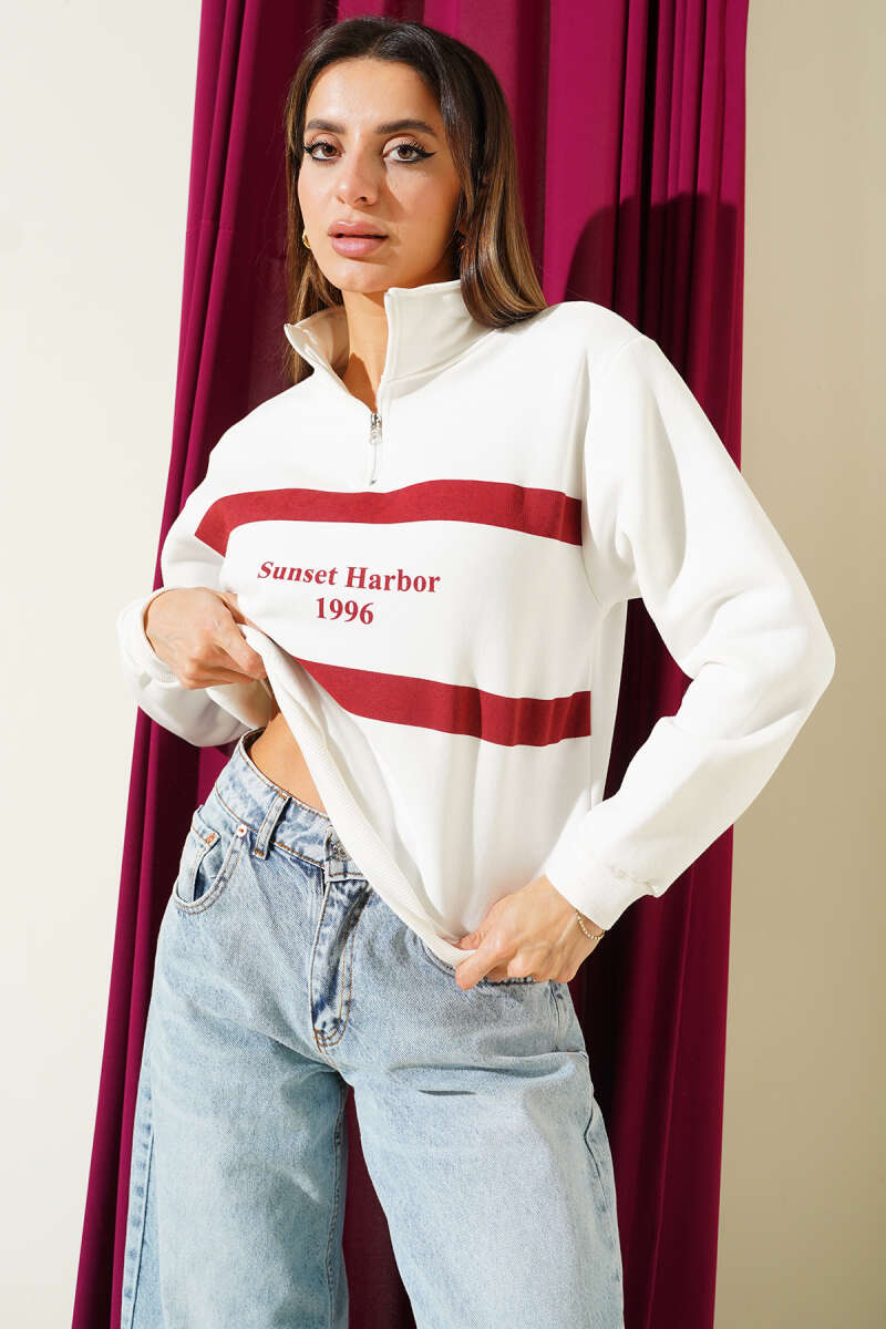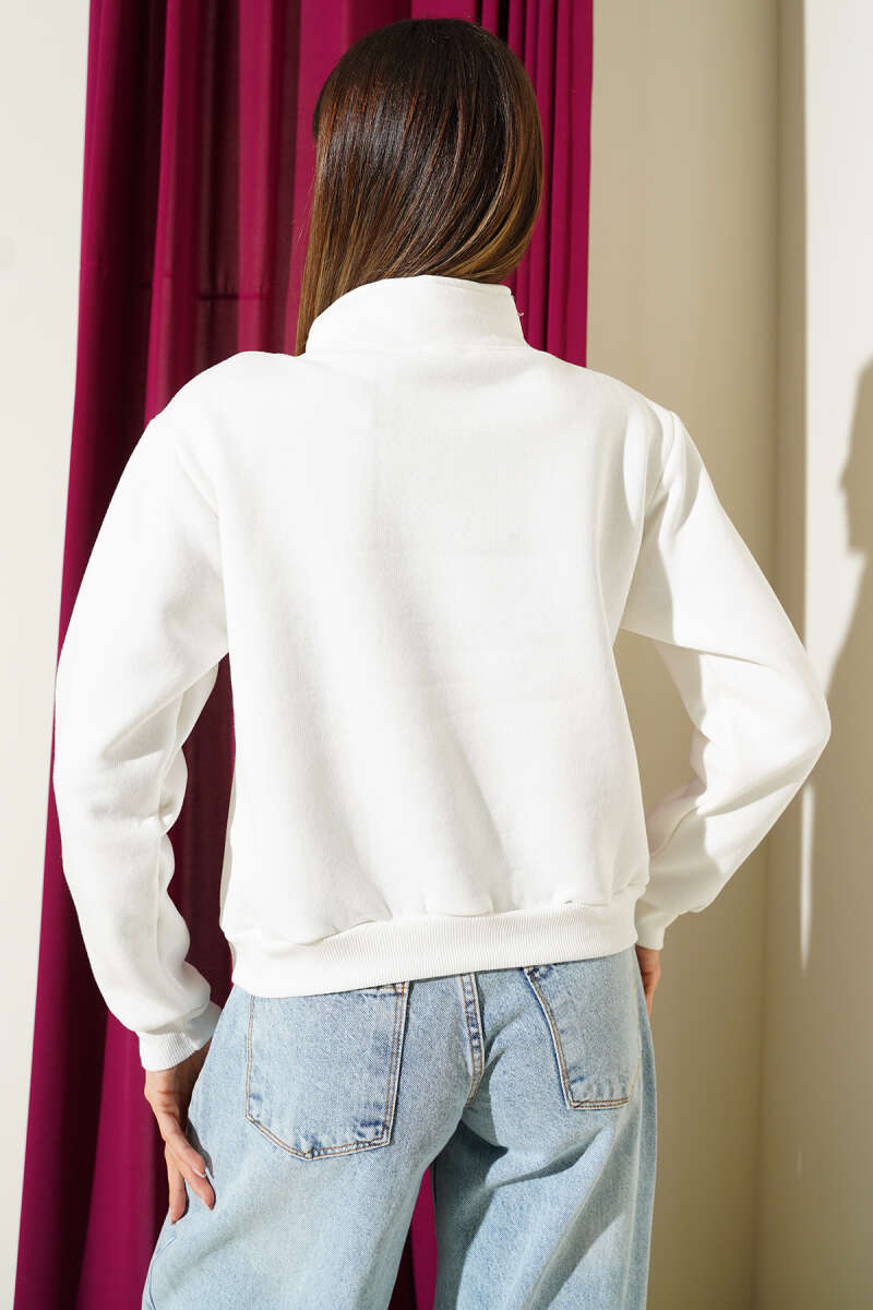Yanları Çıtçıtlı Şardonlu Sweatshirt Ekru