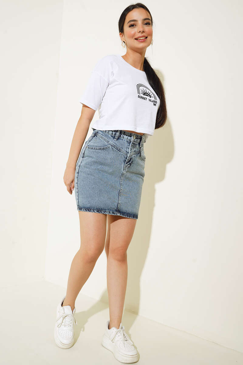 Yeni sezon crop tshirt önünde bulunan nakış detayıyla dikkat çekmektedir. Sunset island ve güneş nakışlı crop tshirt bisiklet yakadır. Crop tshirt sportif kombinlerinizin vazgeçilmez tamamlayıcısı olacaktır.