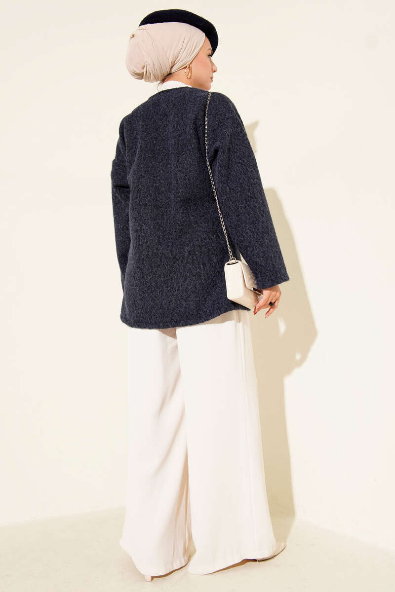 Tek Düğmeli Kemerli Sakallı Ceket Mor