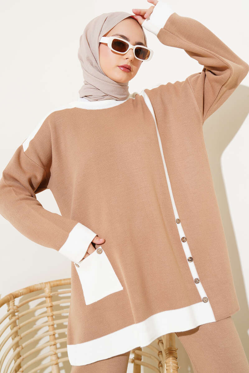 Pantolonu Çımalı Salaş İkili Takım Latte