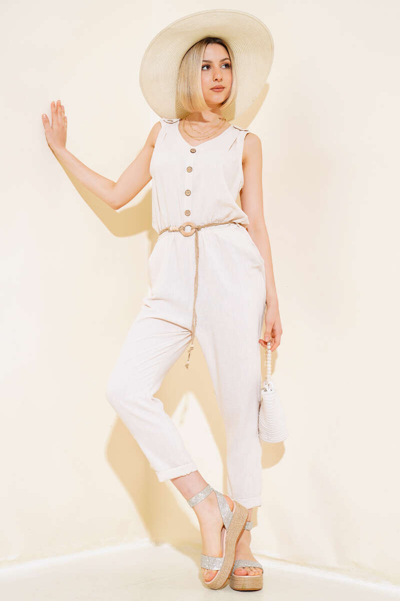 Yeni sezon tulum modelimiz sizlerle beraber. Tulumumuz kalın askılıdır. Askısında düğme detayı vardır. Önünde tahta düğme süsü mevcuttur. Tulumumuzun beli lastiklidir. İki adet kemer köprüsü vardır. Tokalı hasır ipi vardır. İki adet cebi vardır. Duble paçadır. Hem şık hem sportif olmak isteyenlerin favorisi olacaktır.