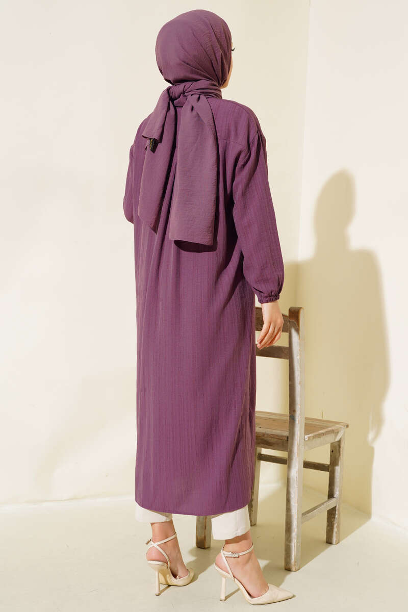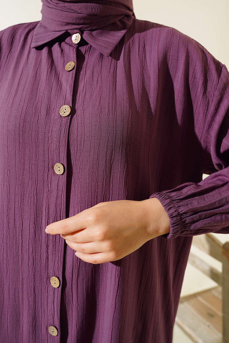 Tahta Düğmeli Uzun Gömlek Burgonya