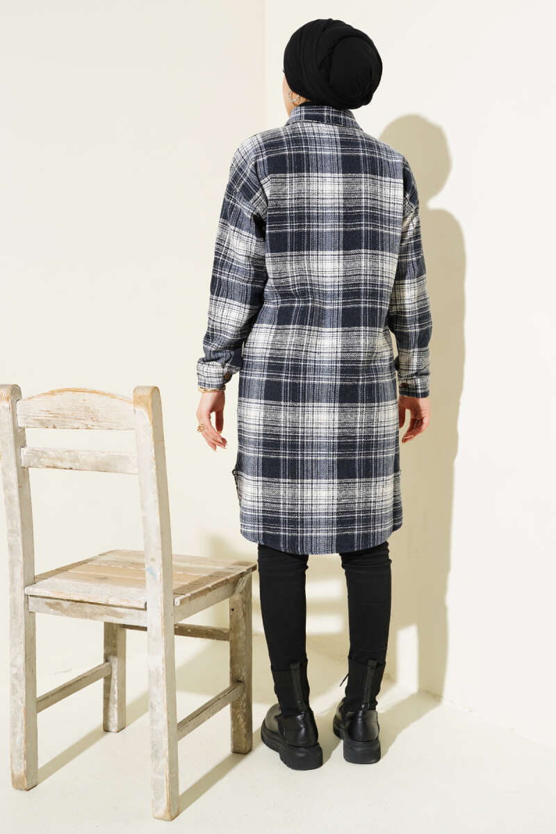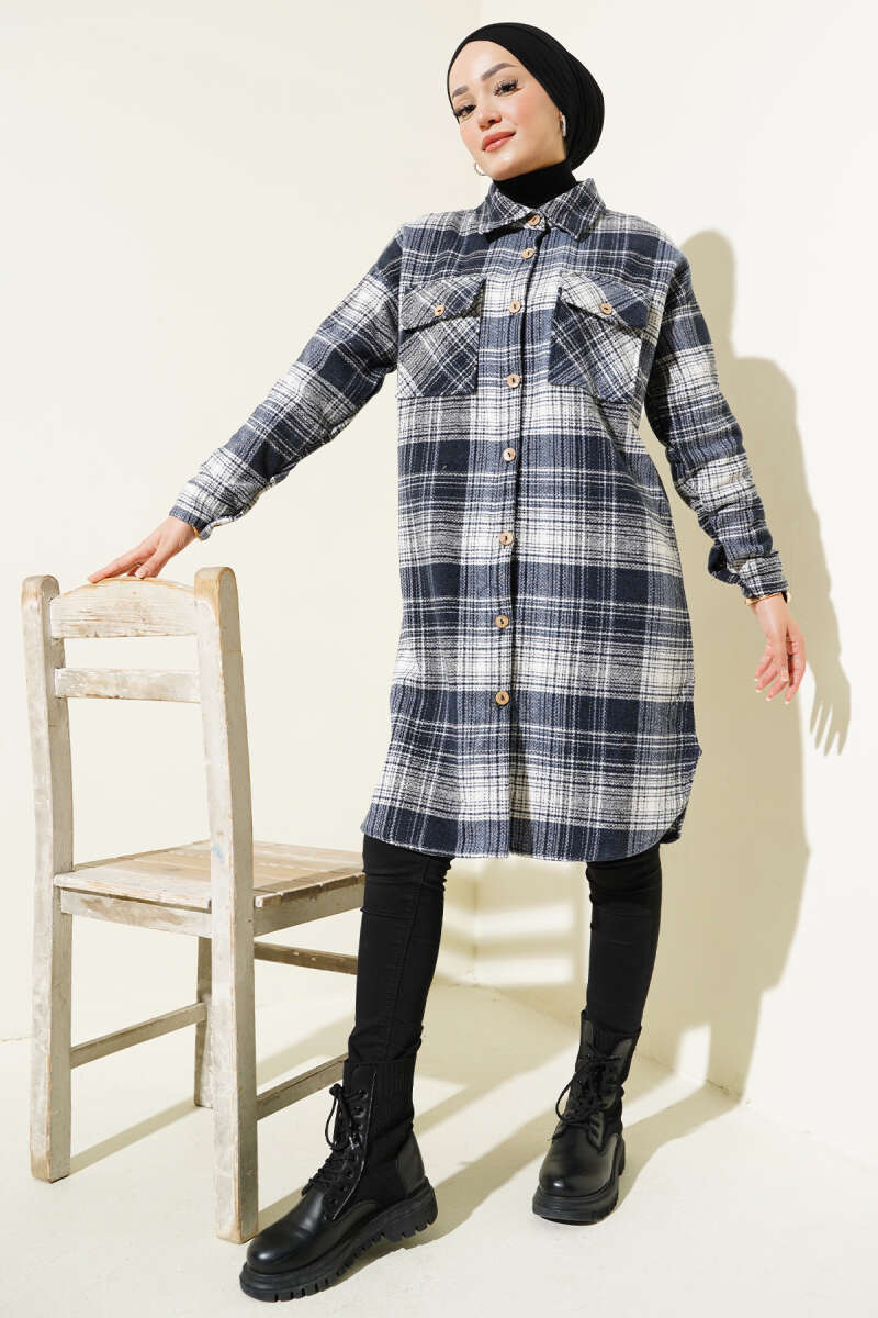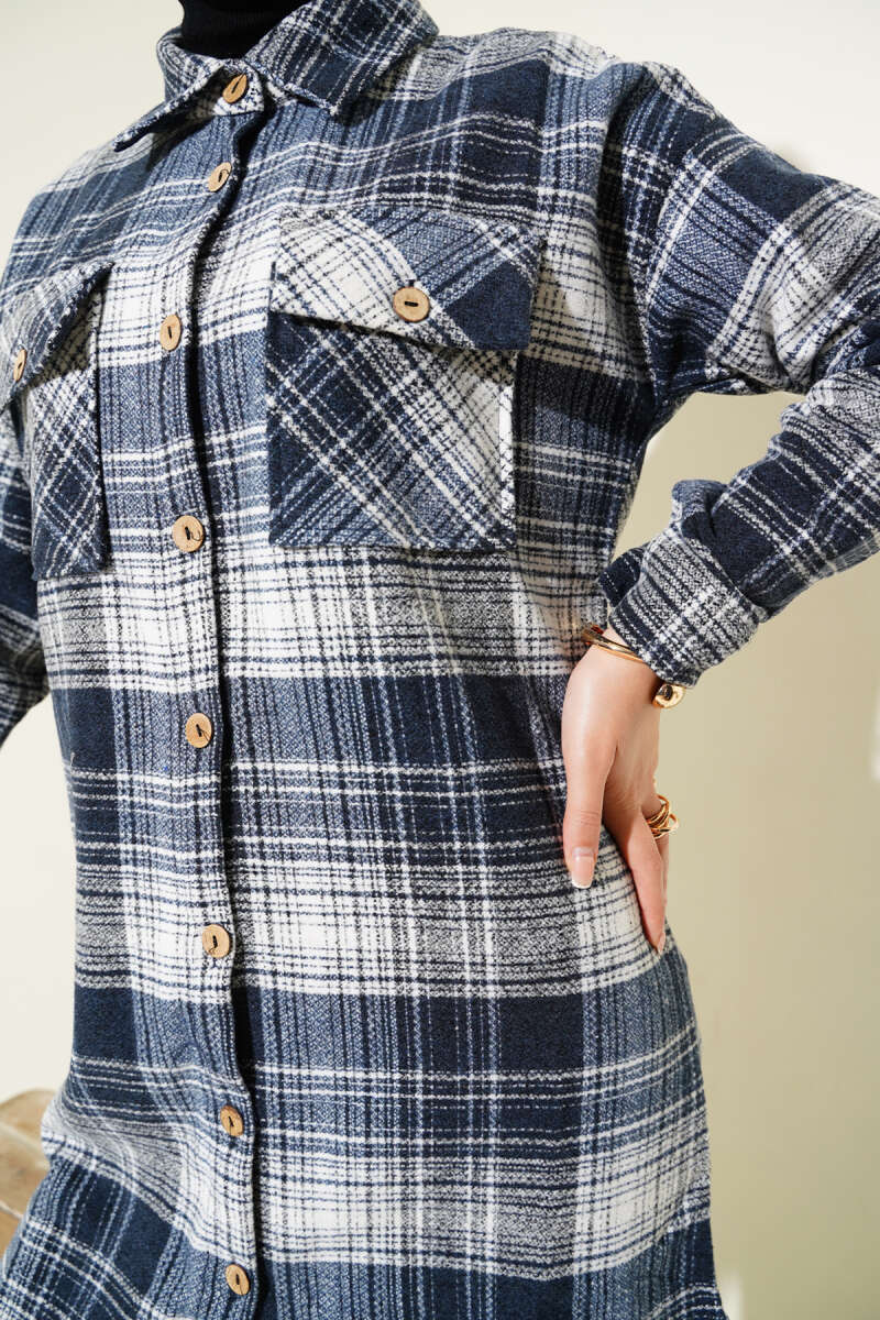 Tahta Düğmeli Uzun Oduncu Gömlek Lacivert