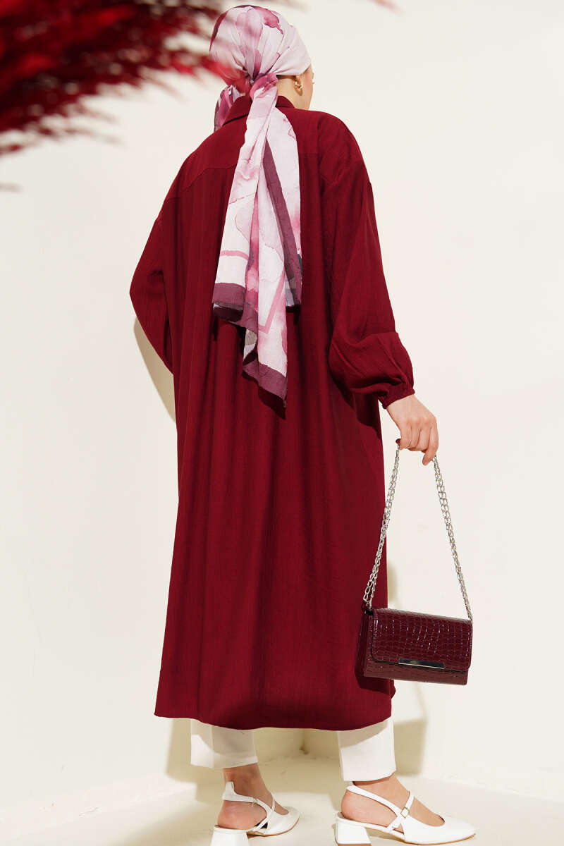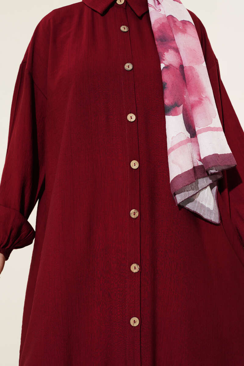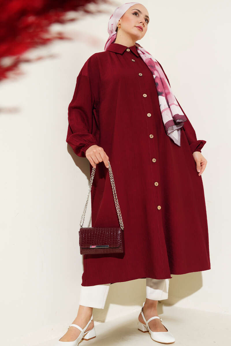 Tahta Düğmeli Uzun Tunik Bordo