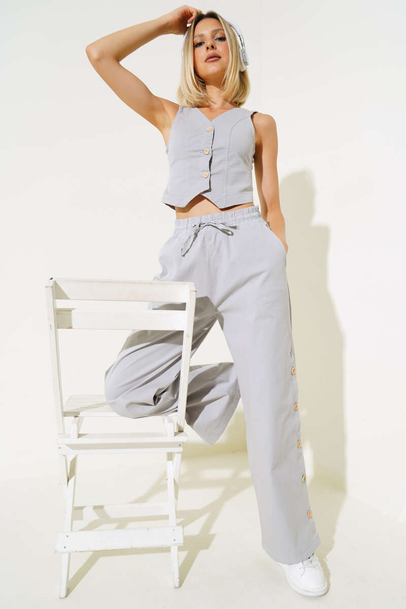 Taş Düğmeli Kuşaklı Goldfox Kaban Gri