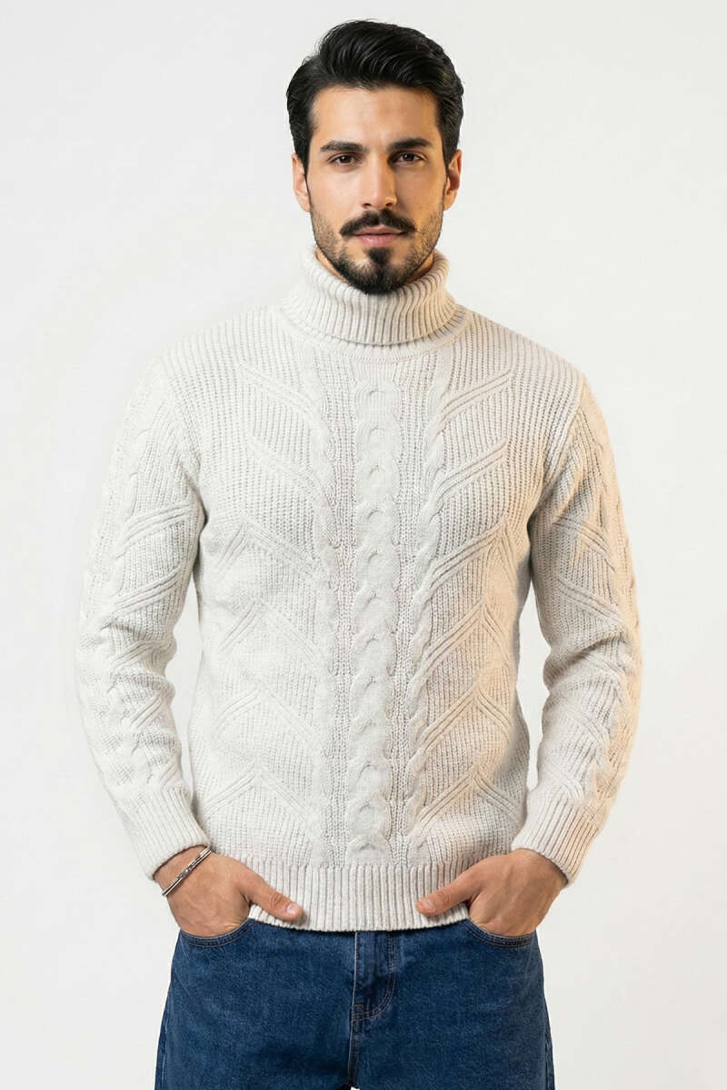 Tam Balıkçı Erkek Triko Kazak Gri