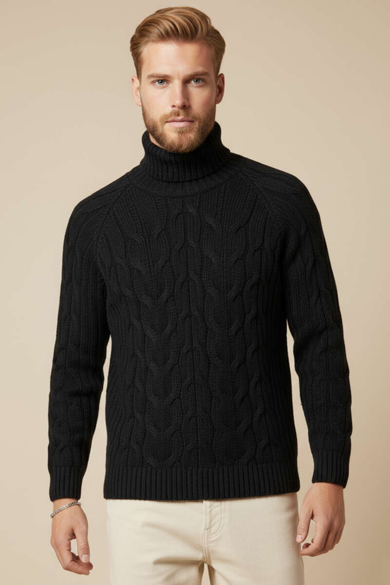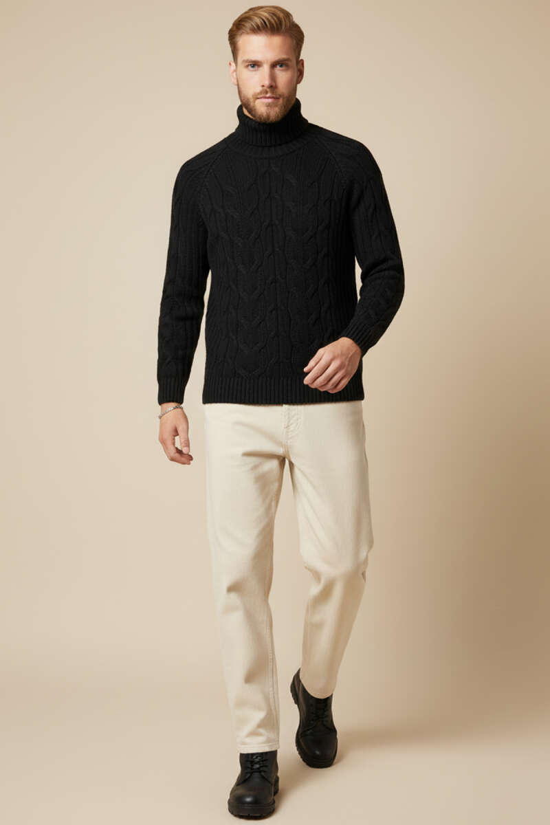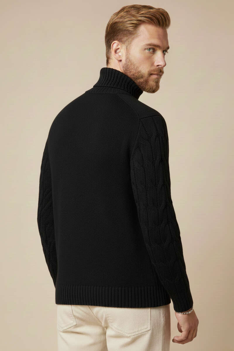 Tam Balıkçı Erkek Triko Kazak Siyah