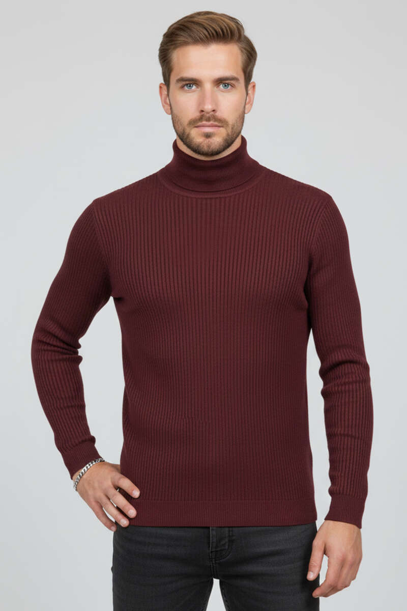 Tam Balıkçı Erkek Triko Kazak Bordo