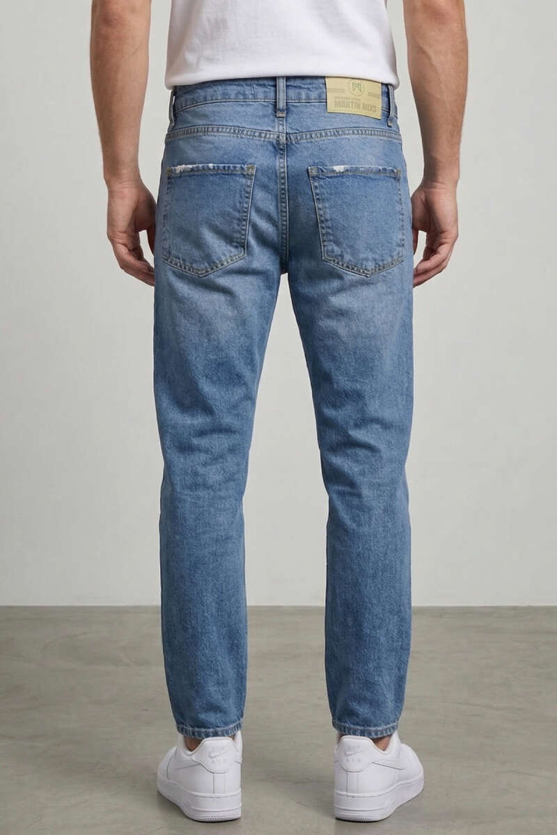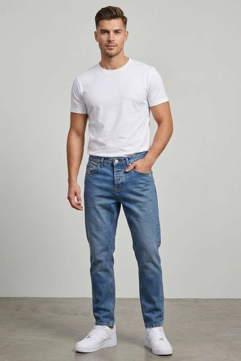 Tapered Fit Kot Erkek Pantolon Orta Mavi