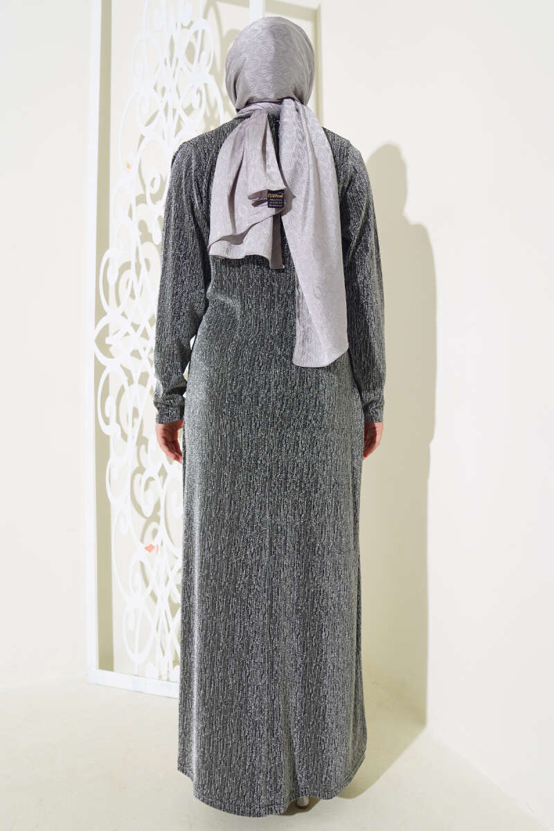 Taş Aksesuarlı Simli Elbise Gri