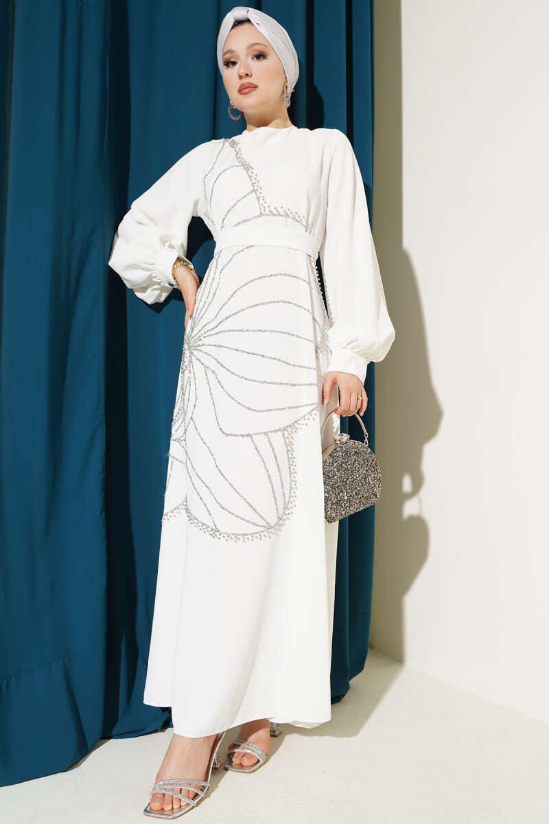 Bel Taşlı Pelerinli Abiye Elbise Haki