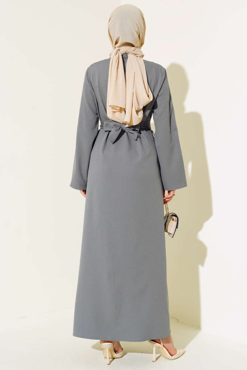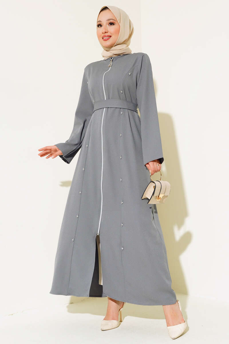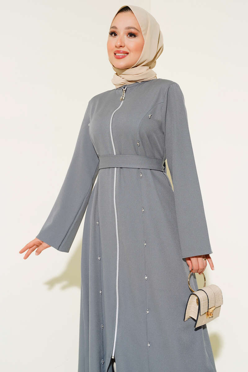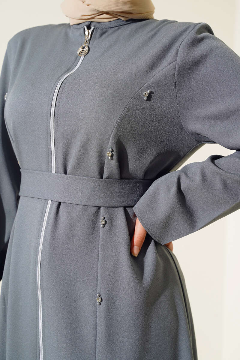Taş Detaylı Fermuarlı Ferace Menekşe