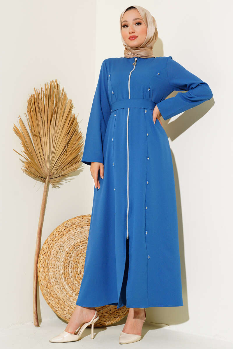 Taş Detaylı Fermuarlı Ferace Menekşe