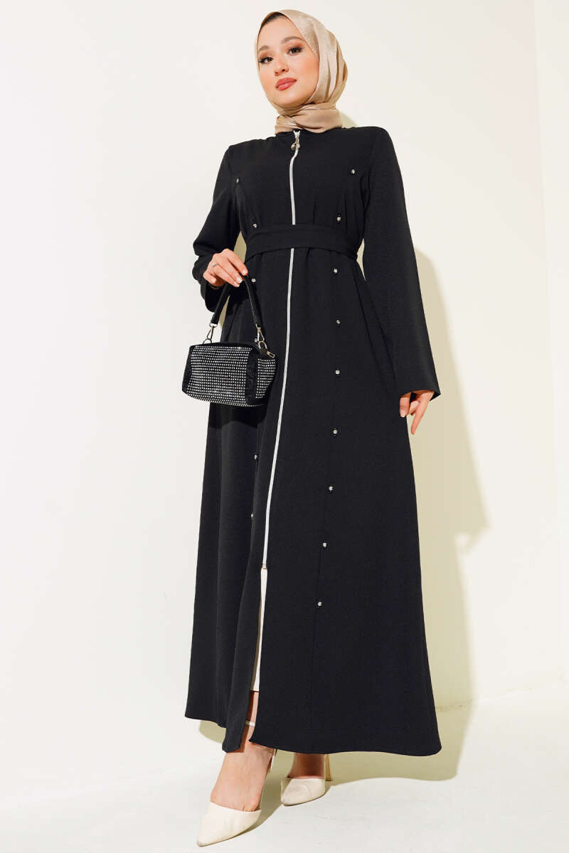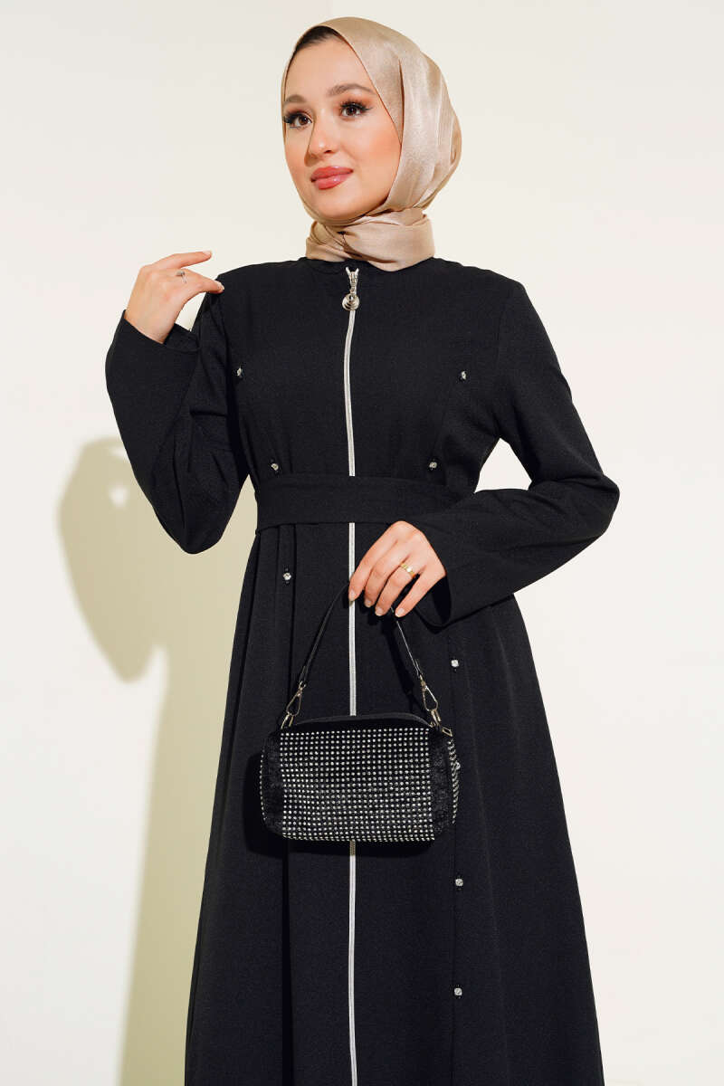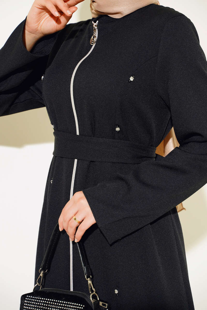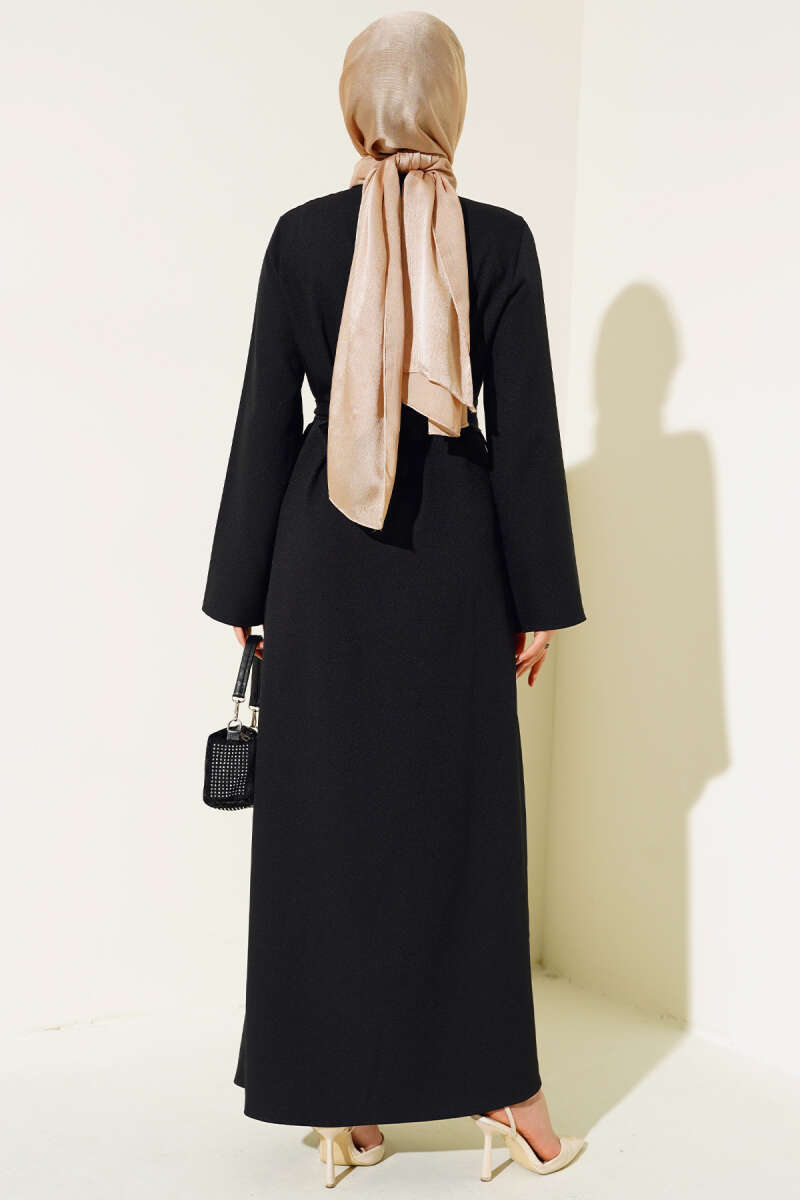 Üç Düğmeli Kruvaze Yaka Siyah Trençkot