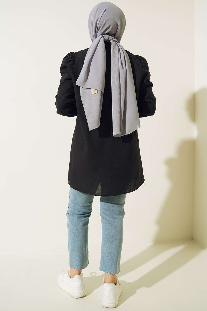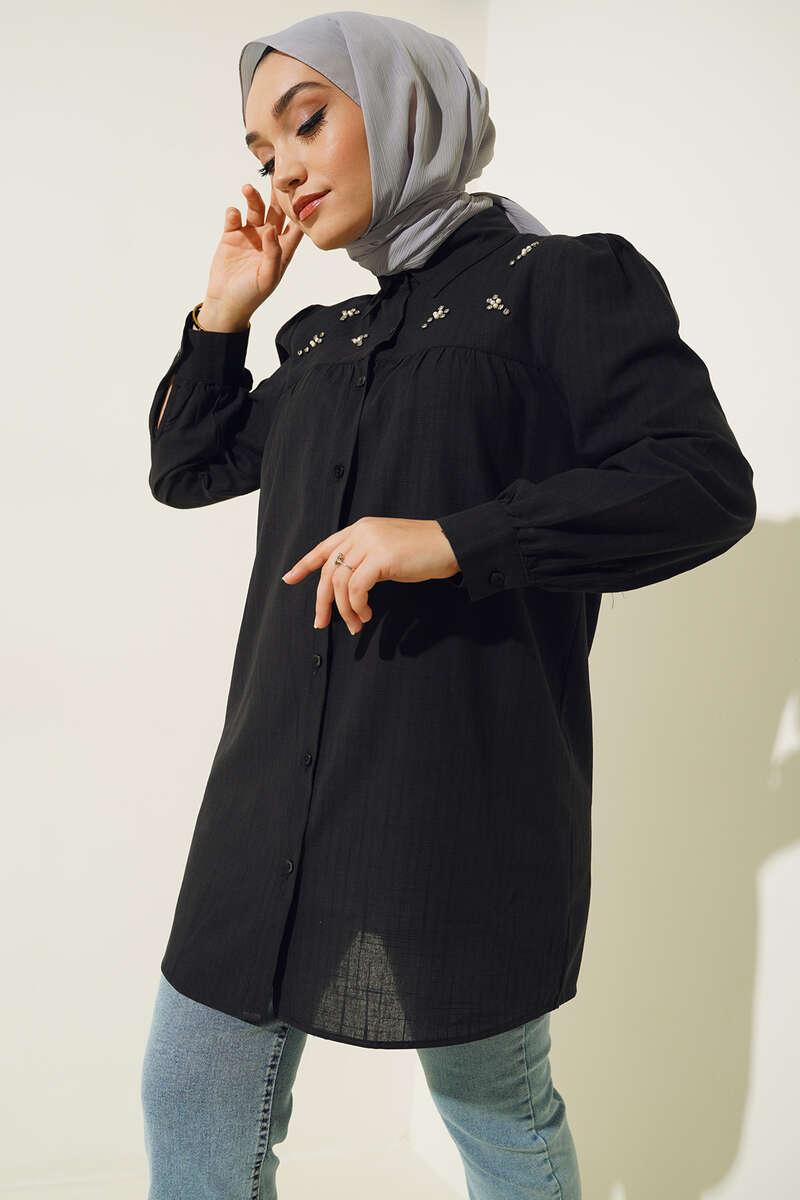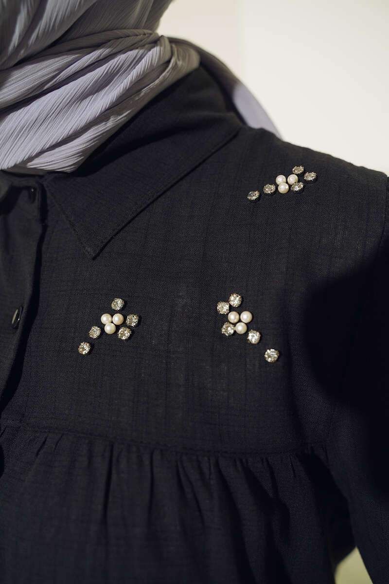 Taş Detaylı Flam Tunik Siyah