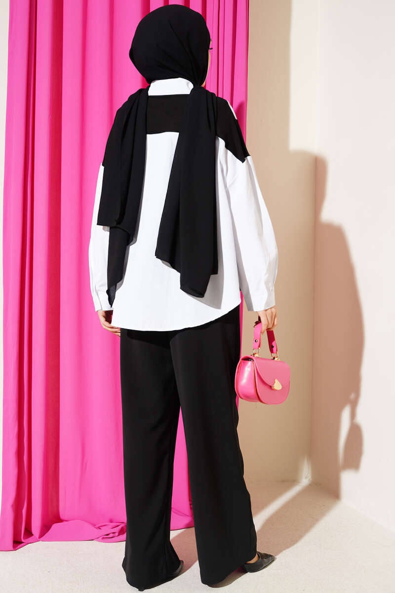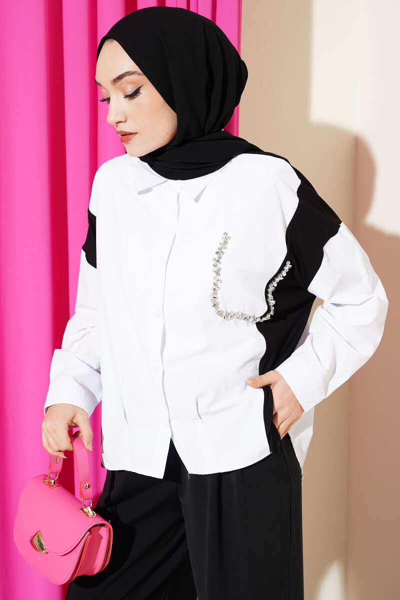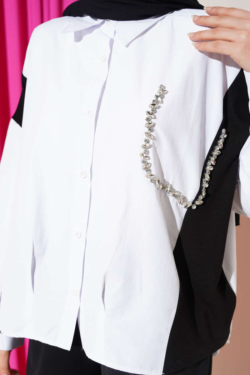 Taş Detaylı Garnili Gömlek Beyaz