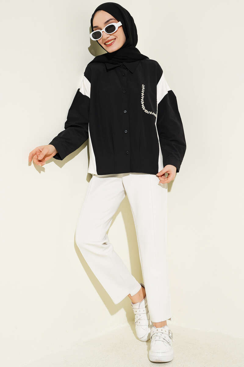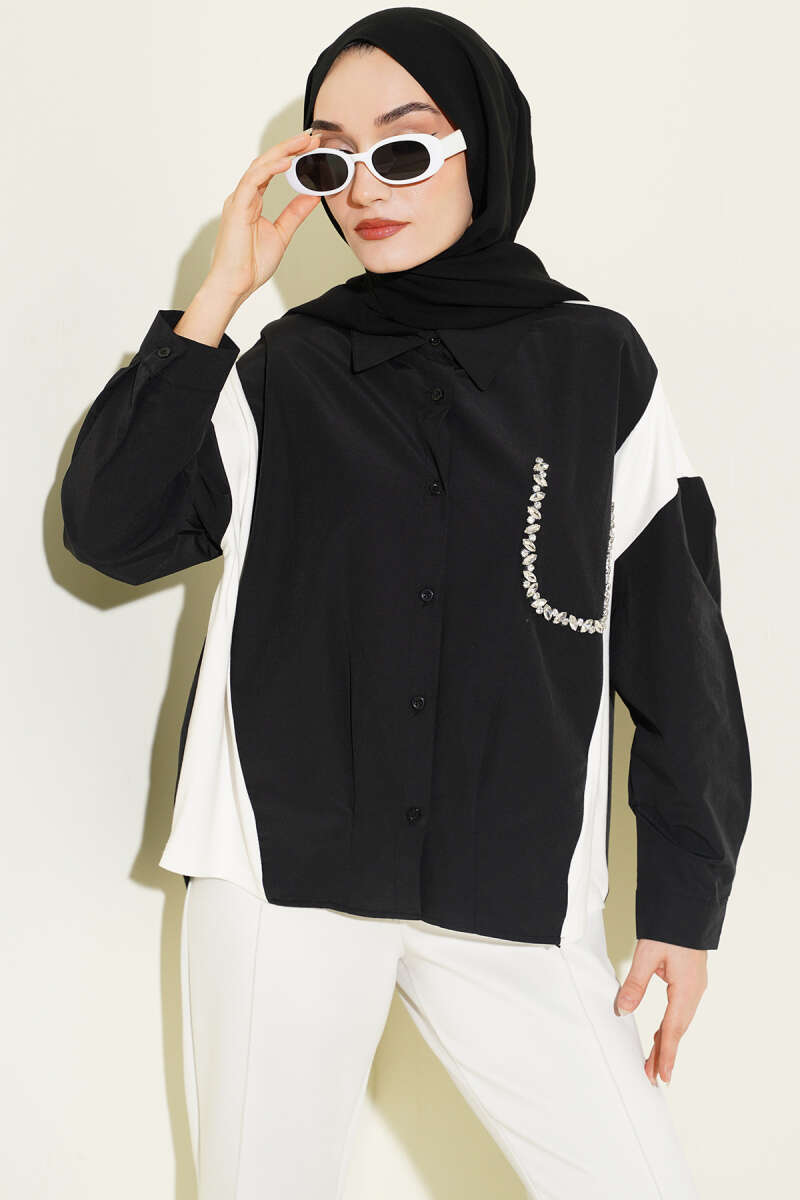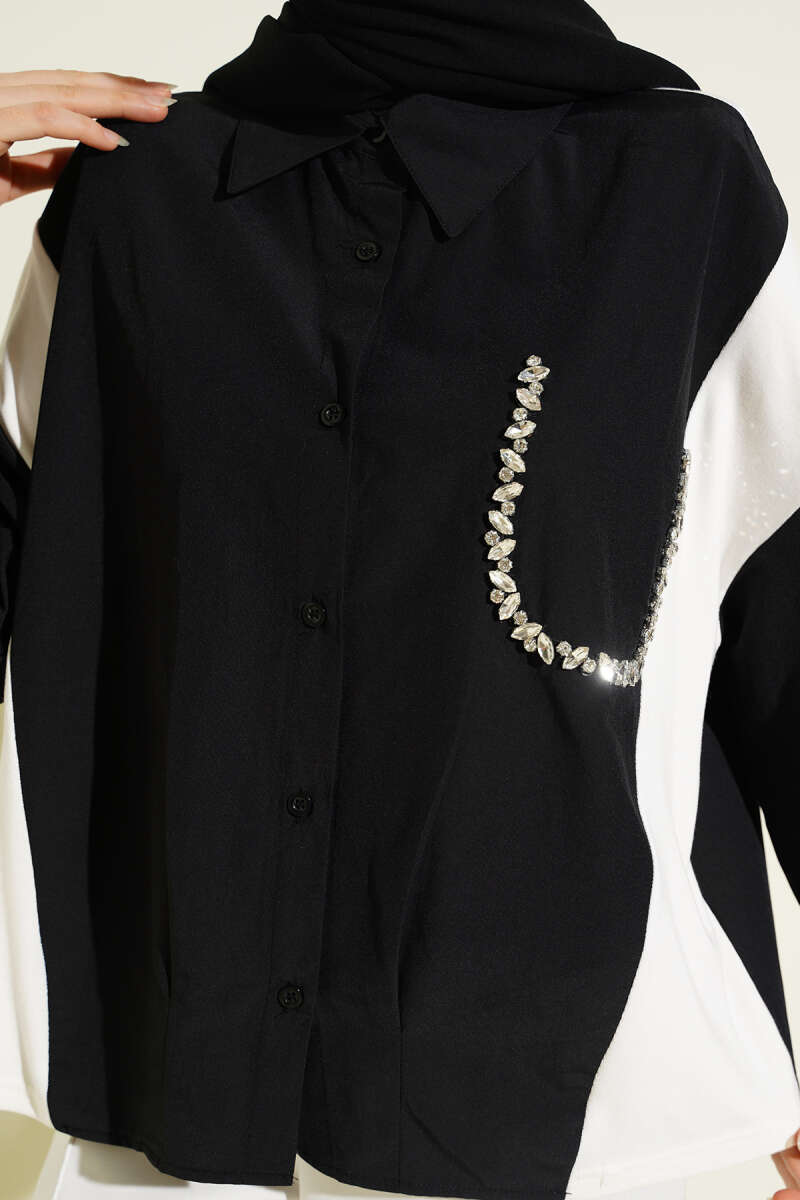 Taş Detaylı Garnili Gömlek Siyah