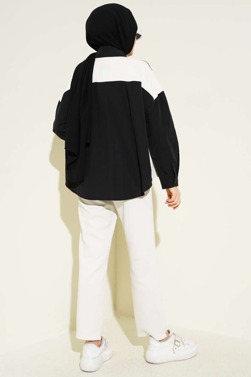 Yakası Ve Kol Manşeti Taşlı Gömlek Siyah