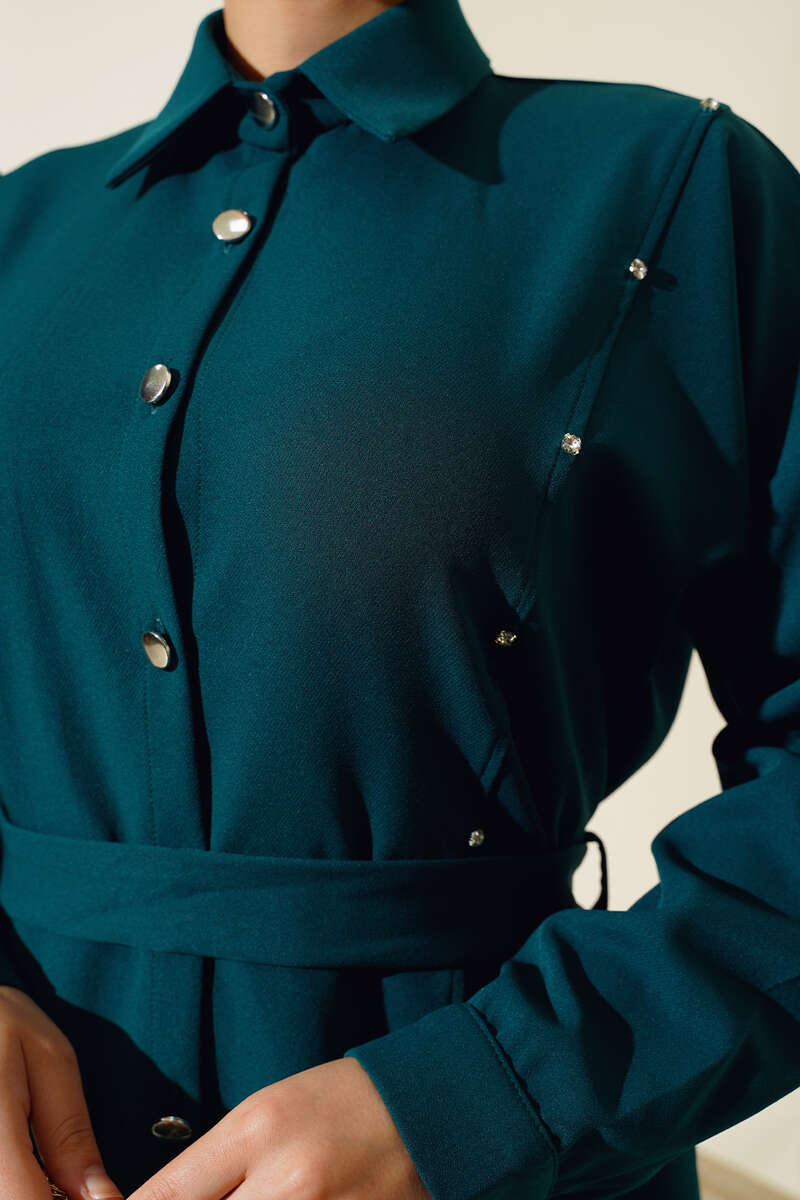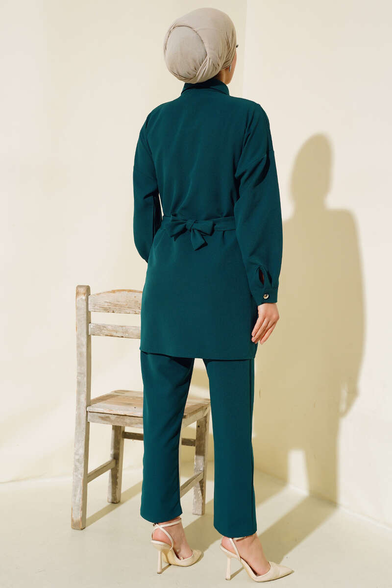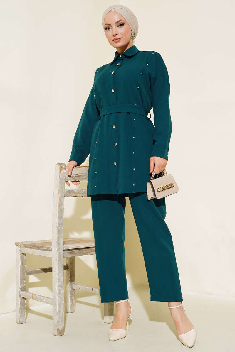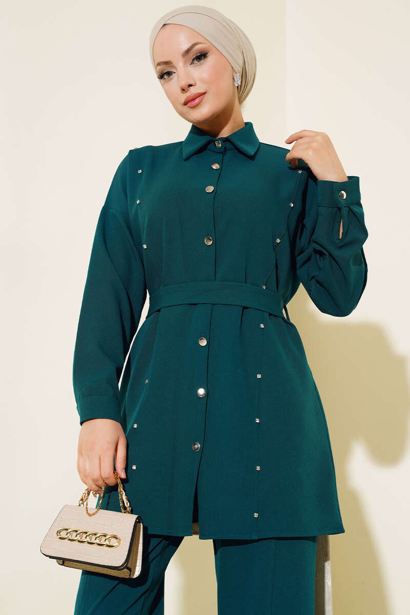 Taş Detaylı Kuşaklı İkili Takım Zümrüt