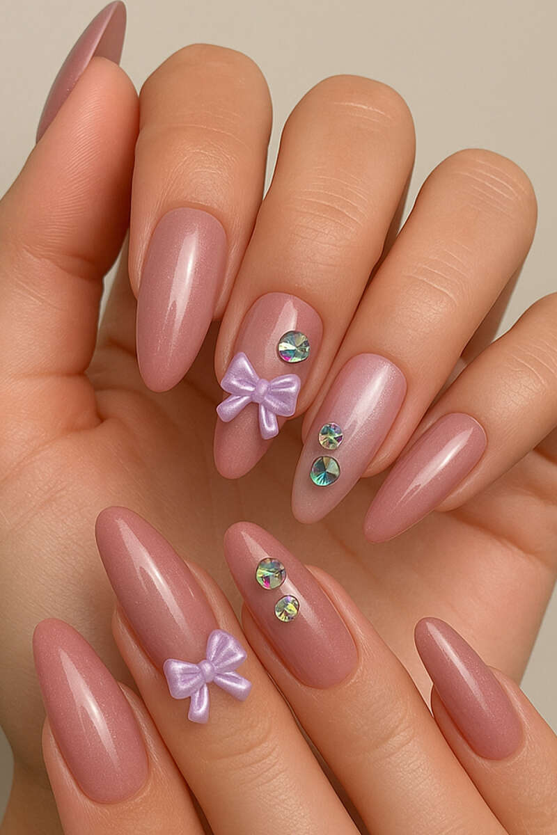 Taş Detaylı Takma Tırnak Gül Kurusu