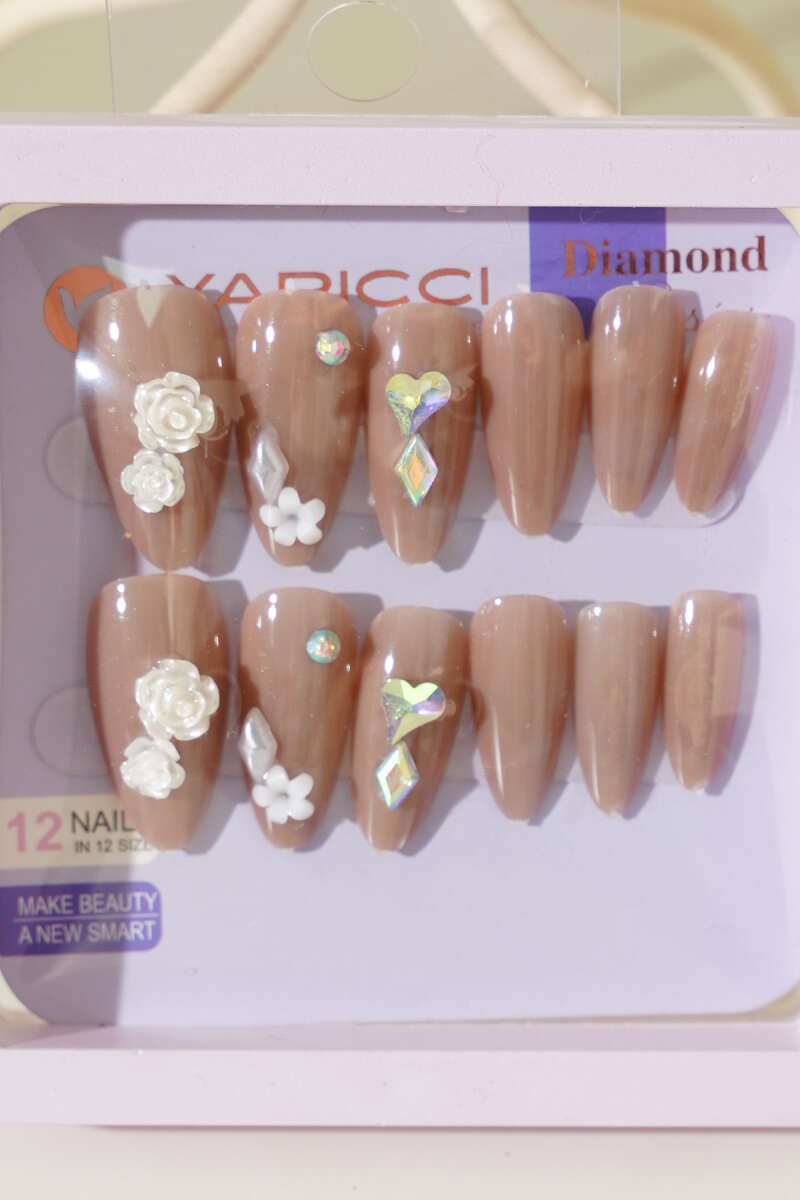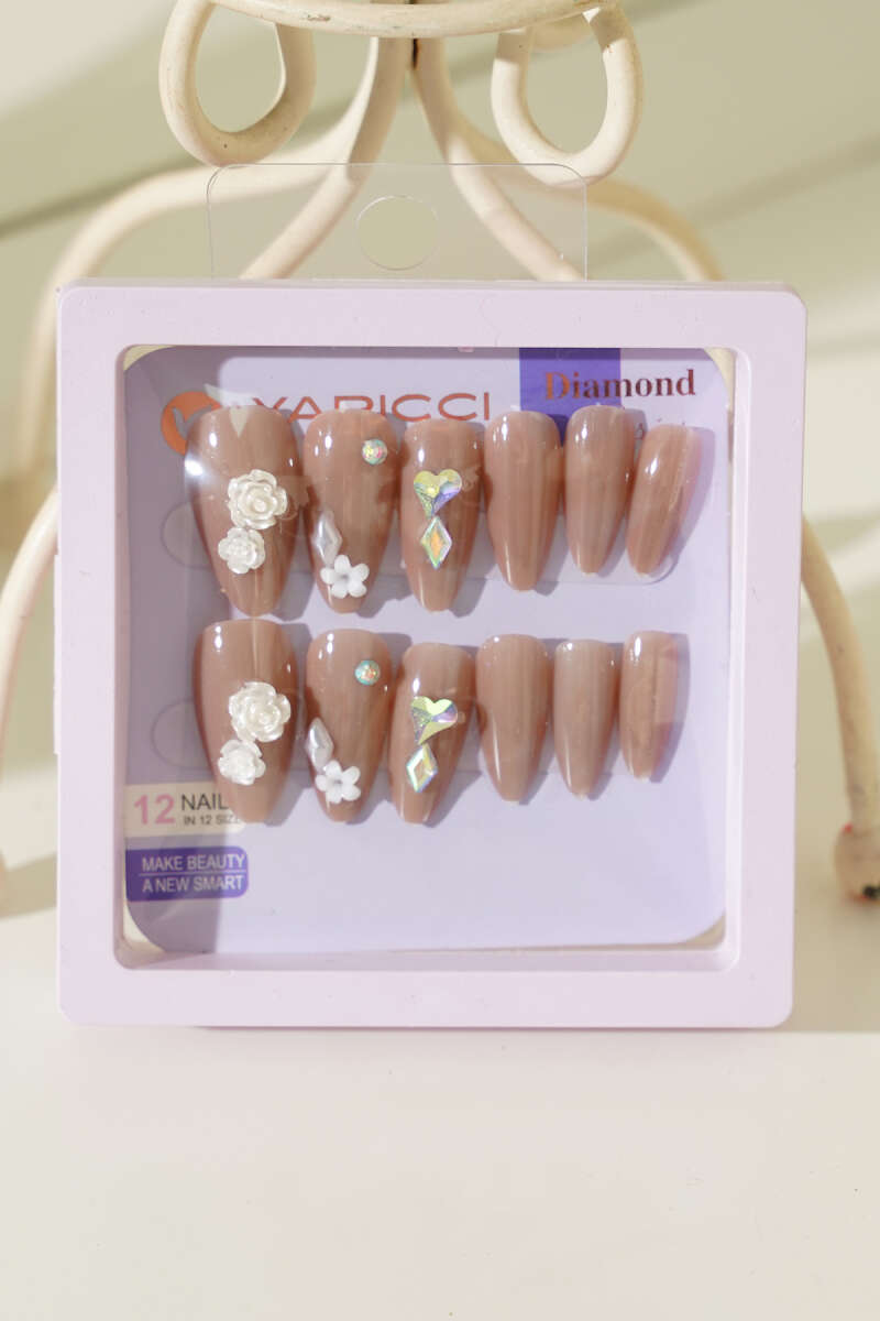 Taş Detaylı Takma Tırnak Sütlü Kahve