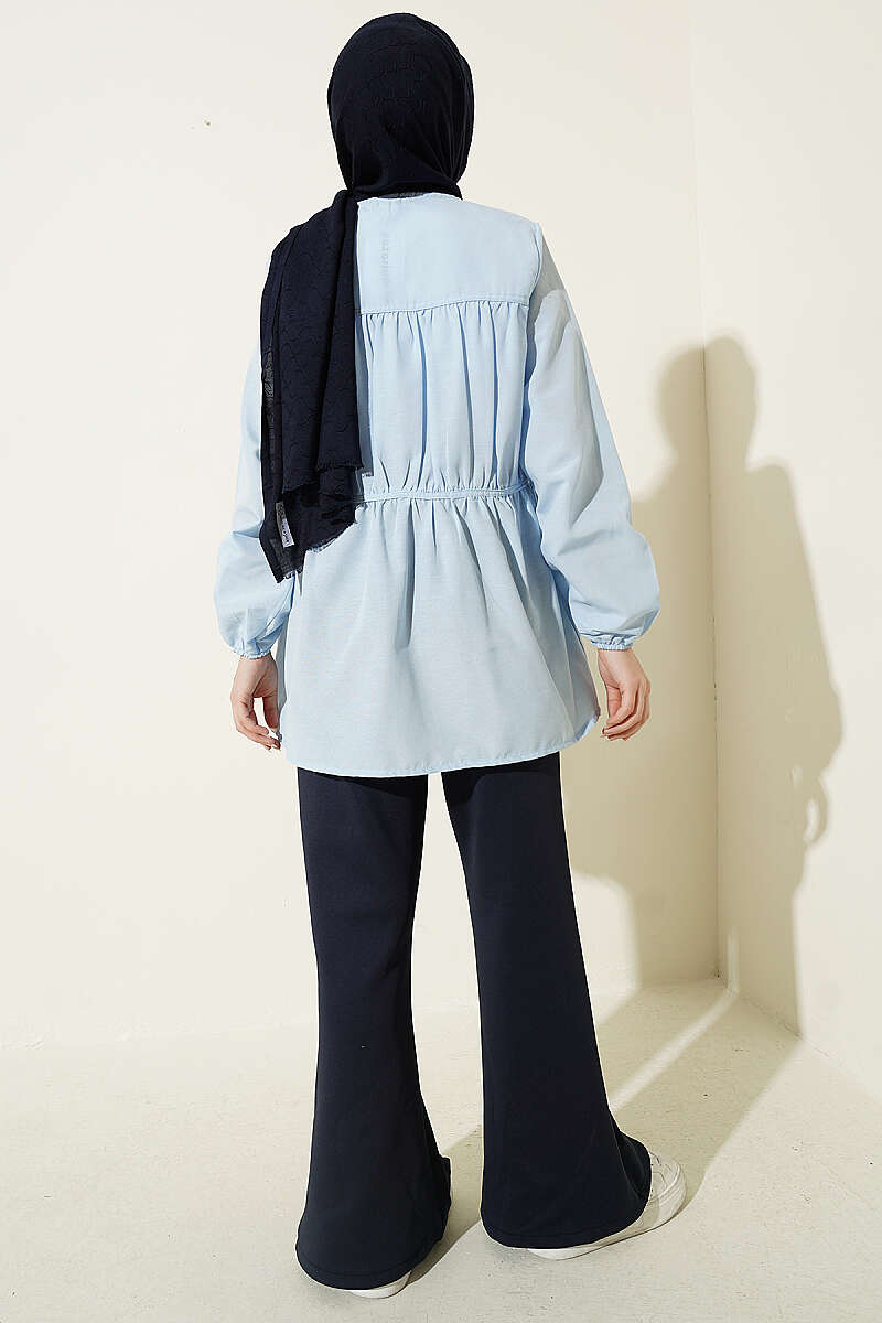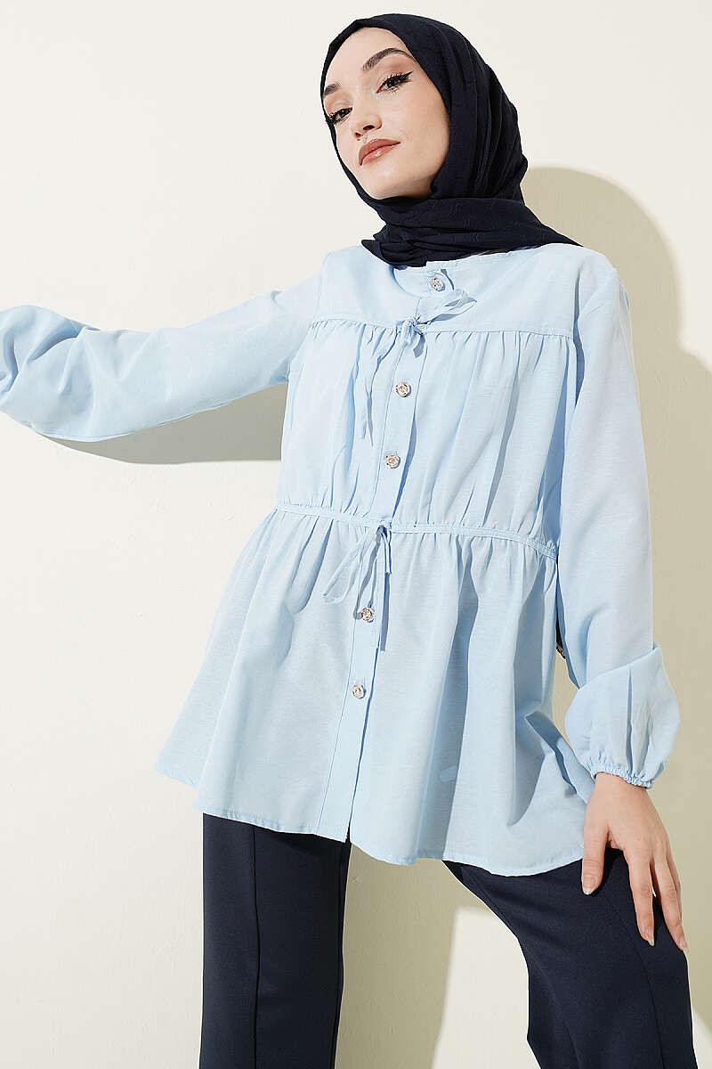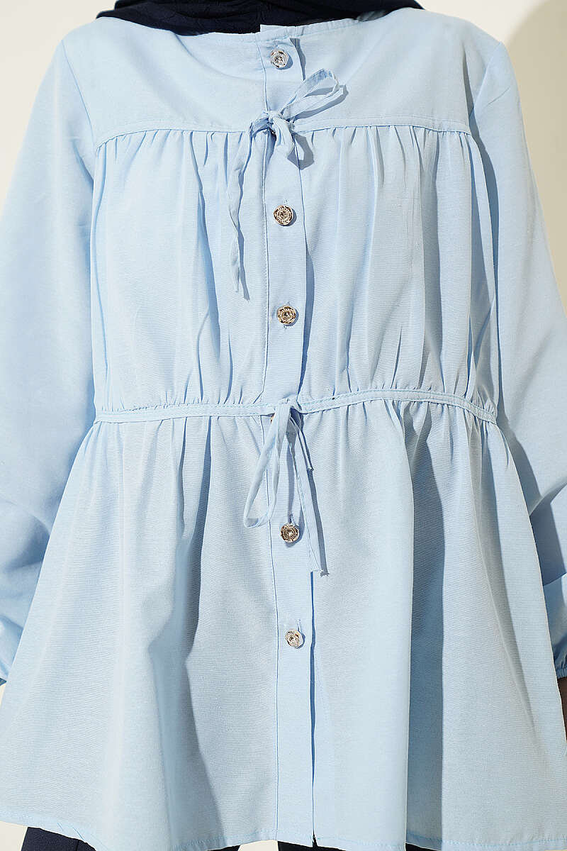 Taş Düğmeli Büzgülü Gömlek Bebe Mavi