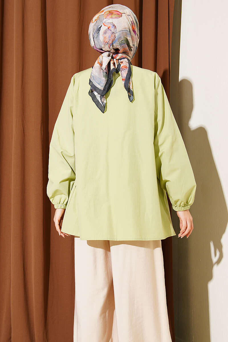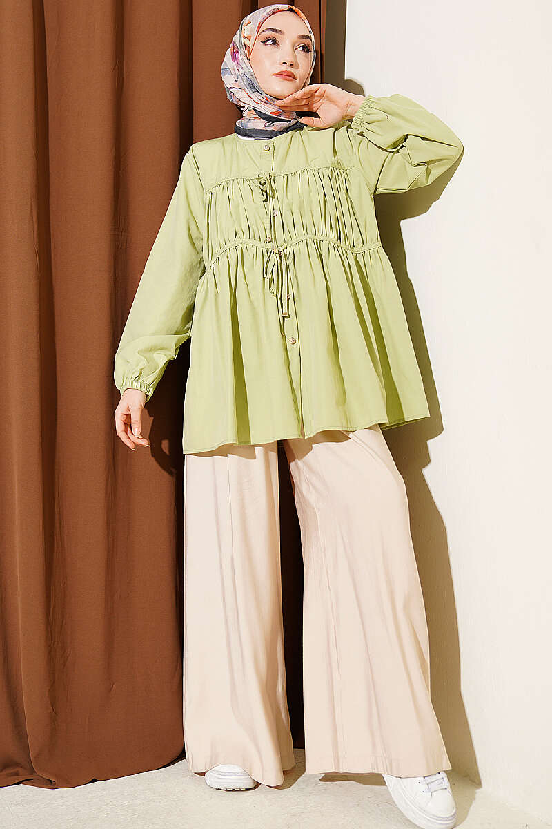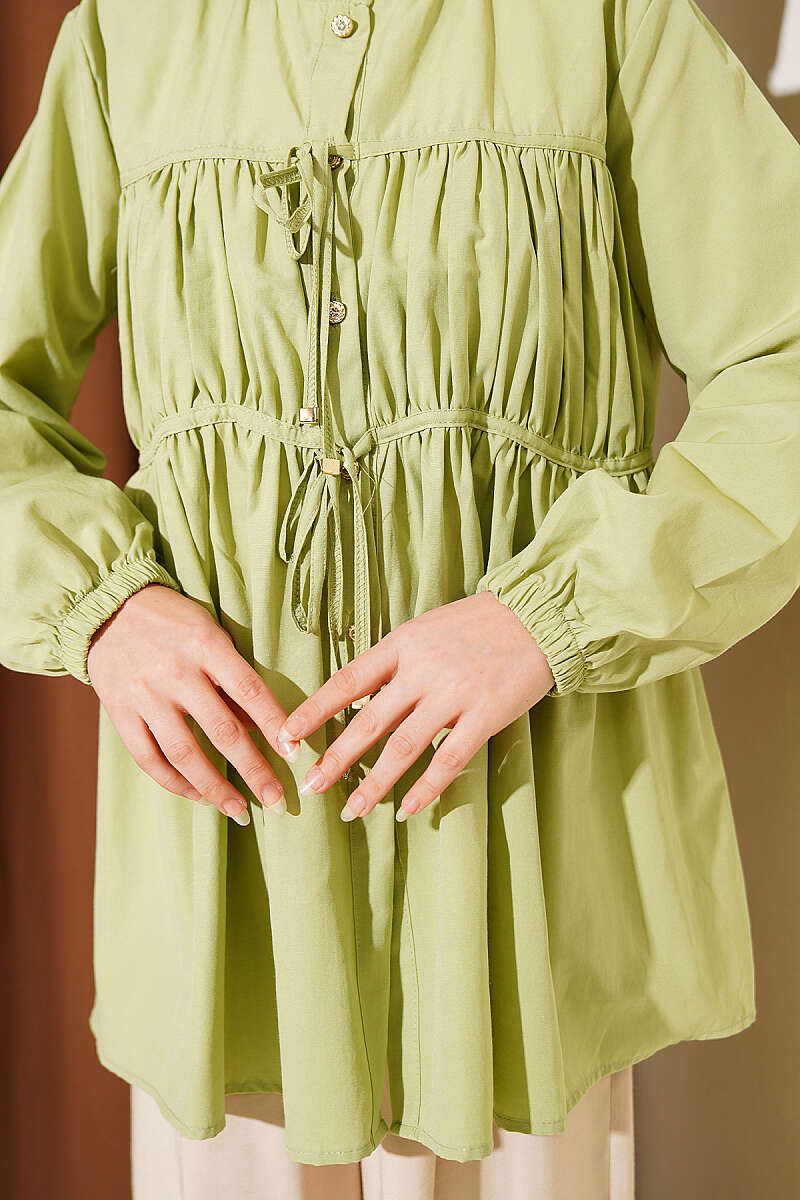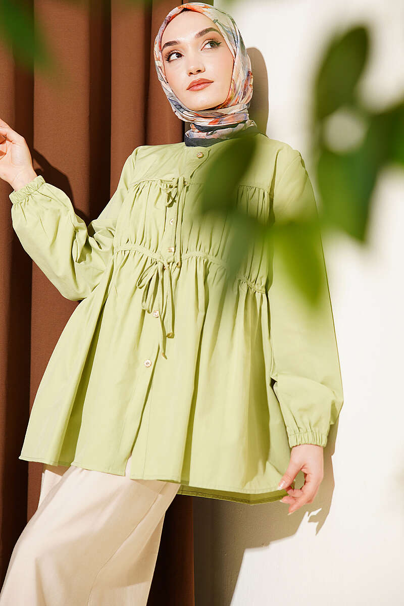 Taş Düğmeli İp Bağlamalı Gömlek Çağla Yeşili