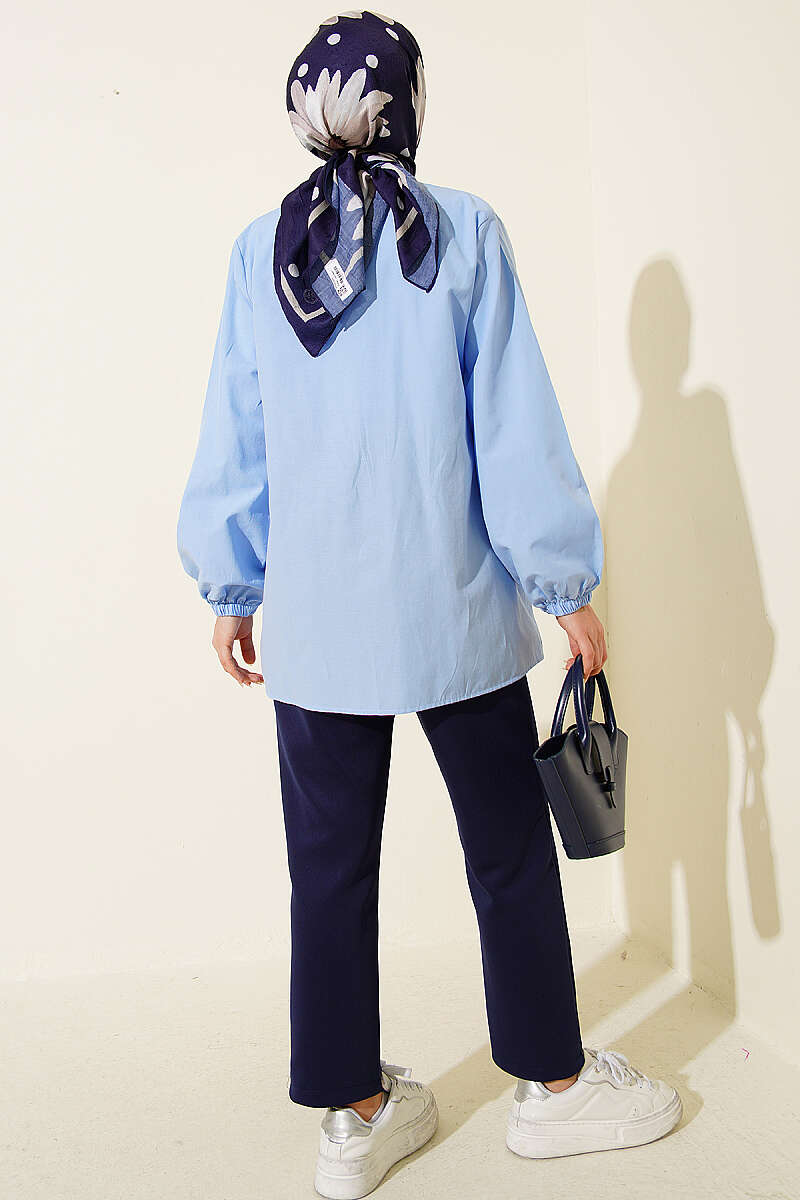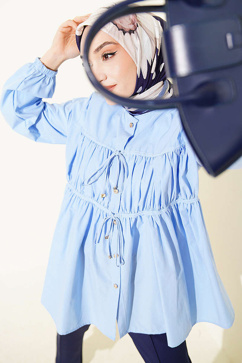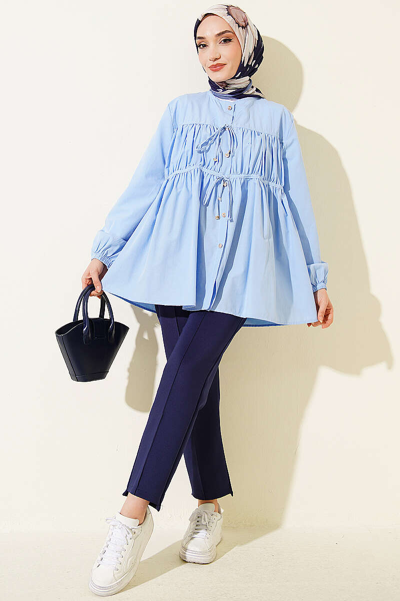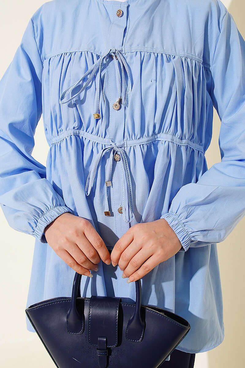Taş Düğmeli İp Bağlamalı Gömlek Mavi