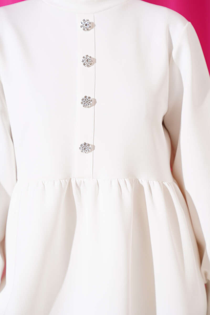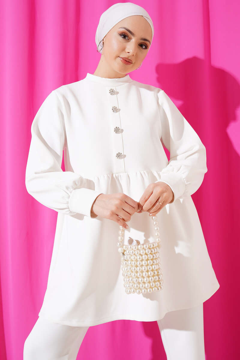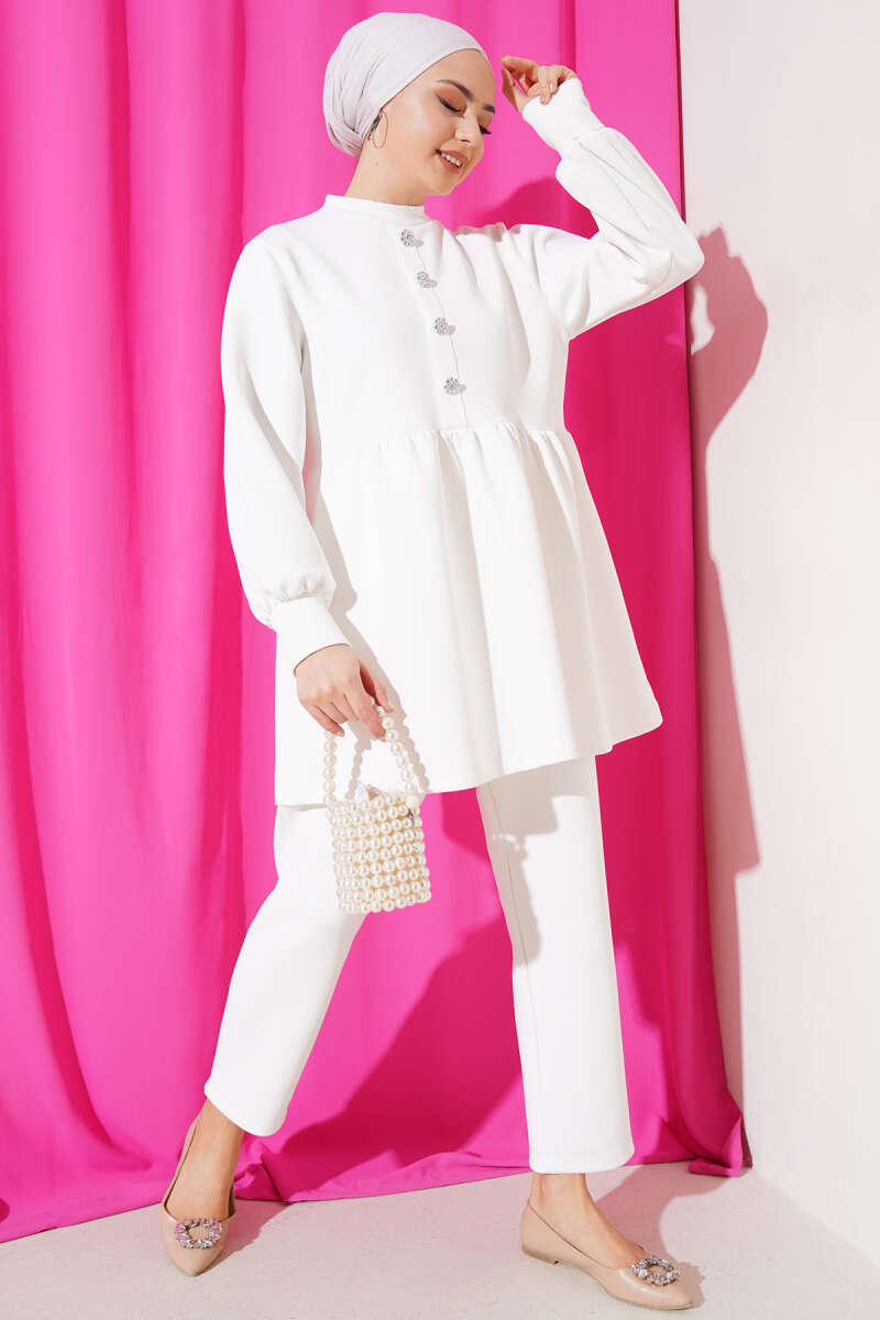 Asimetrik Kesim Bisiklet Yaka İkili Takım Ekru