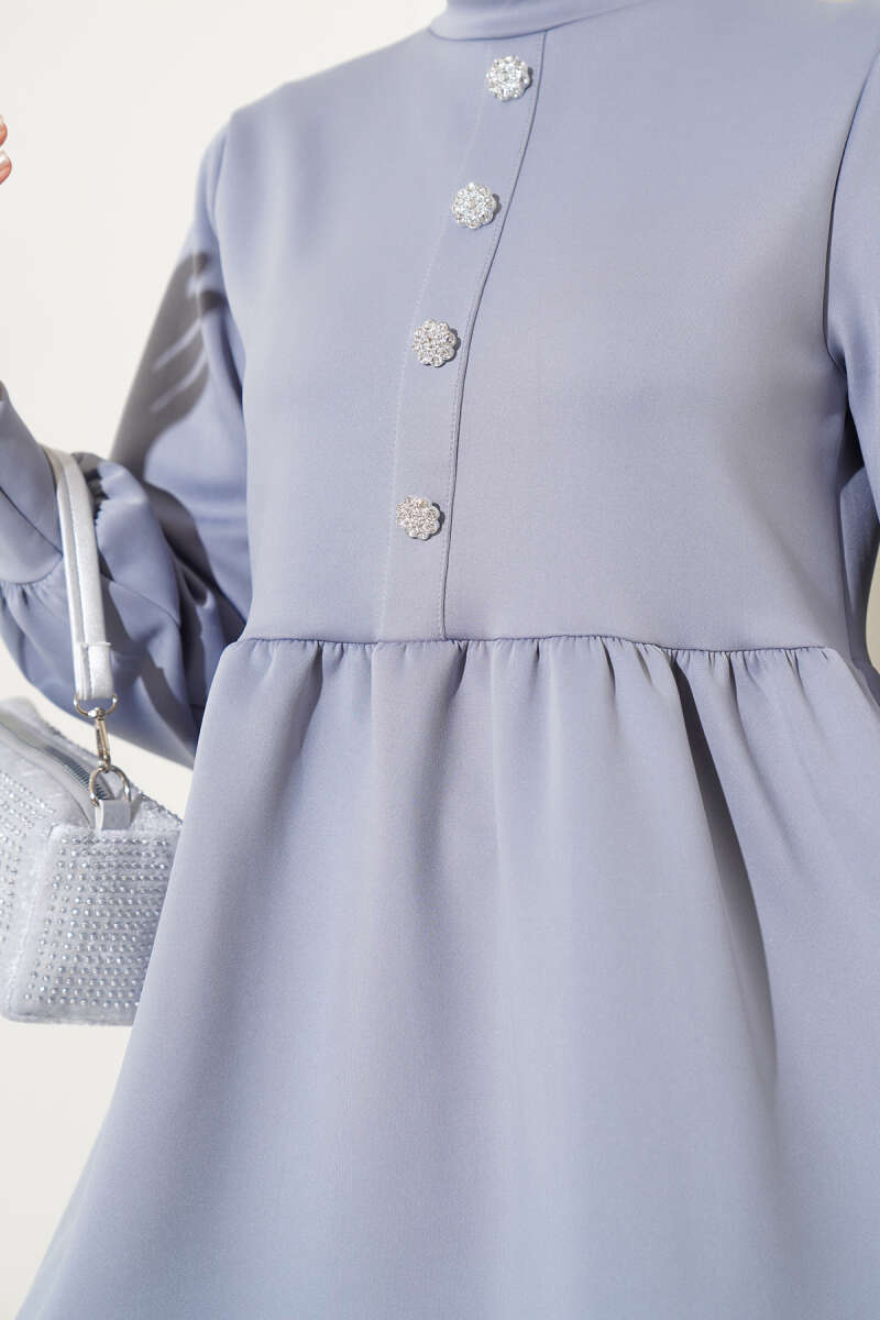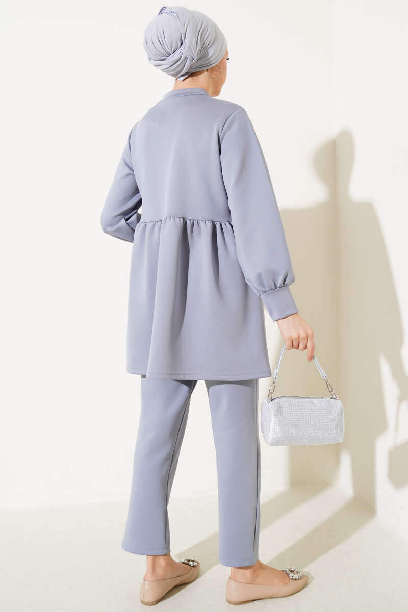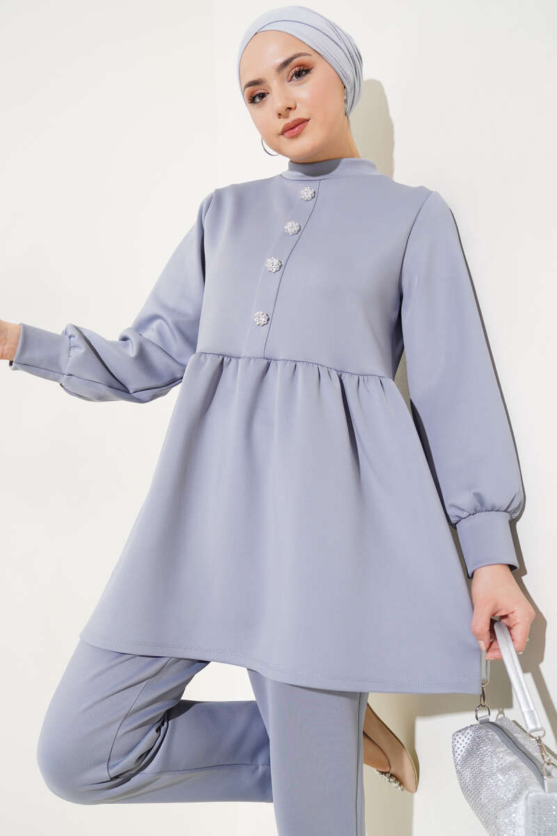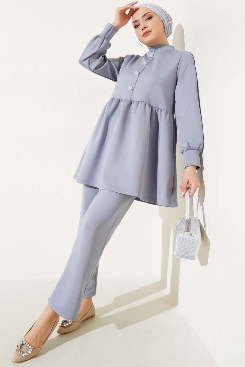 Taş Düğmeli Scuba İkili Takım Gri
