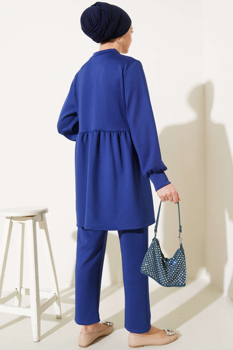 Asimetrik Kesim Bisiklet Yaka İkili Takım Mavi