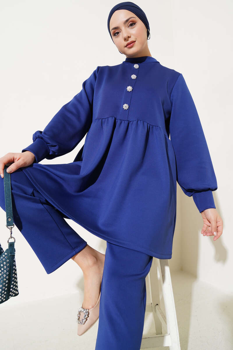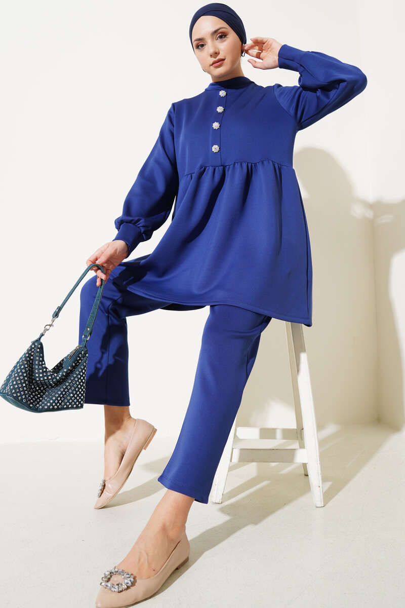 Taş Düğmeli Scuba İkili Takım Lacivert