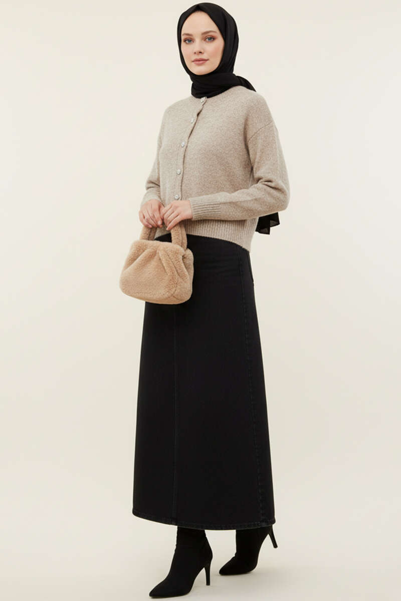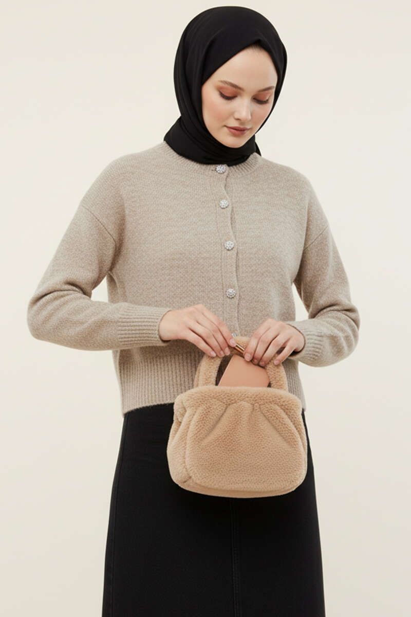 Taş Düğmeli Yumoş Triko Kısa Hırka Kahve
