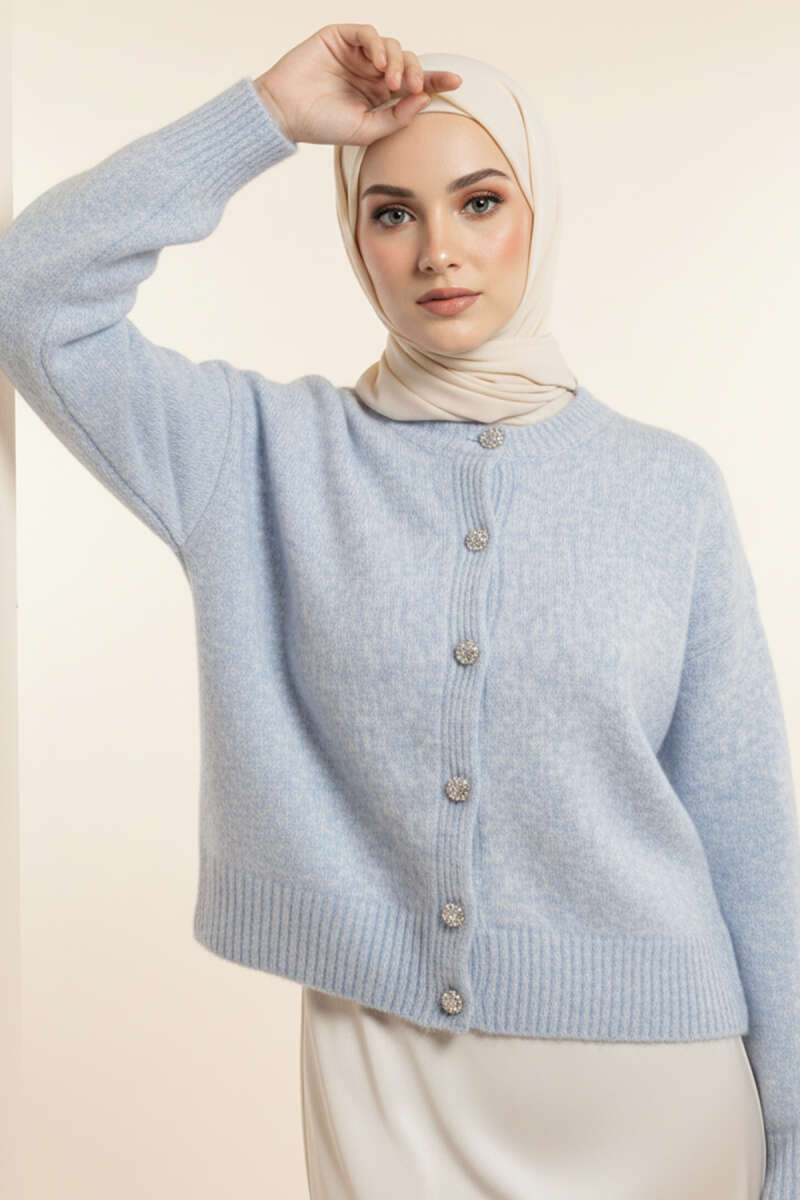 Gold Düğmeli Basic Sakallı Triko Hırka Kahve