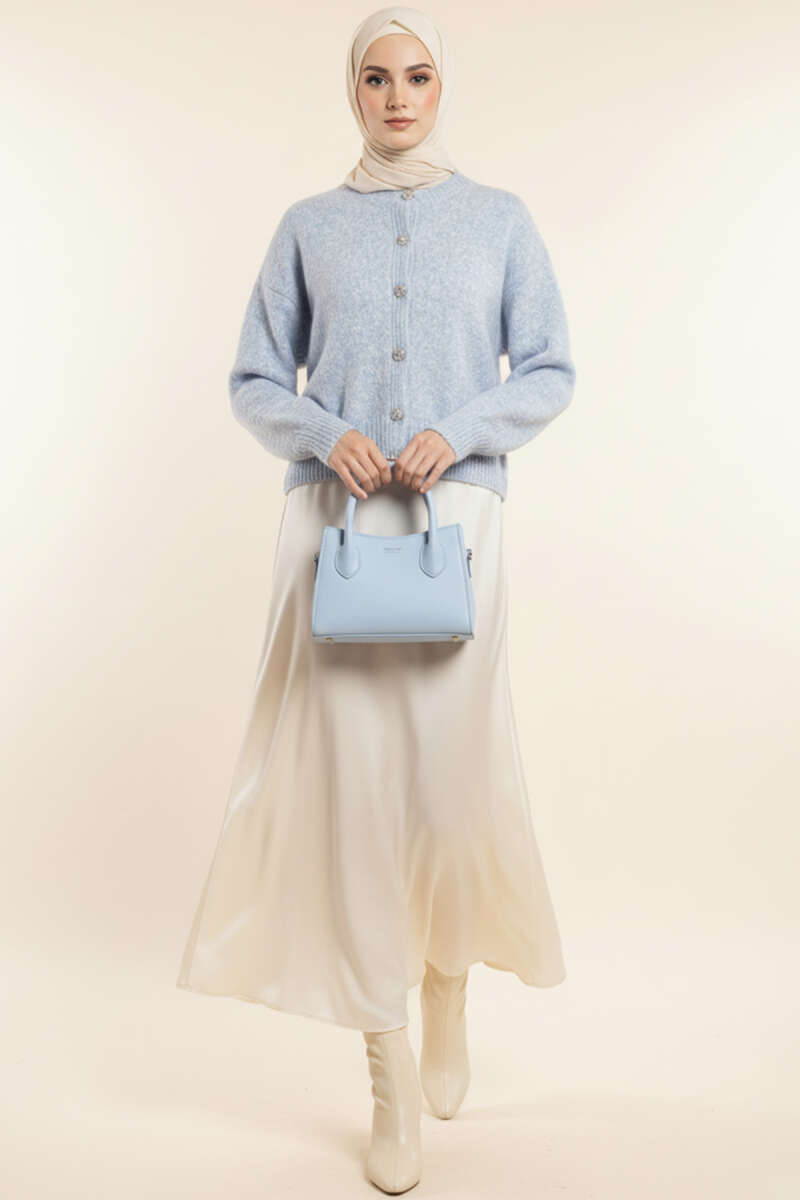 Gold Düğmeli Basic Sakallı Triko Hırka Ekru