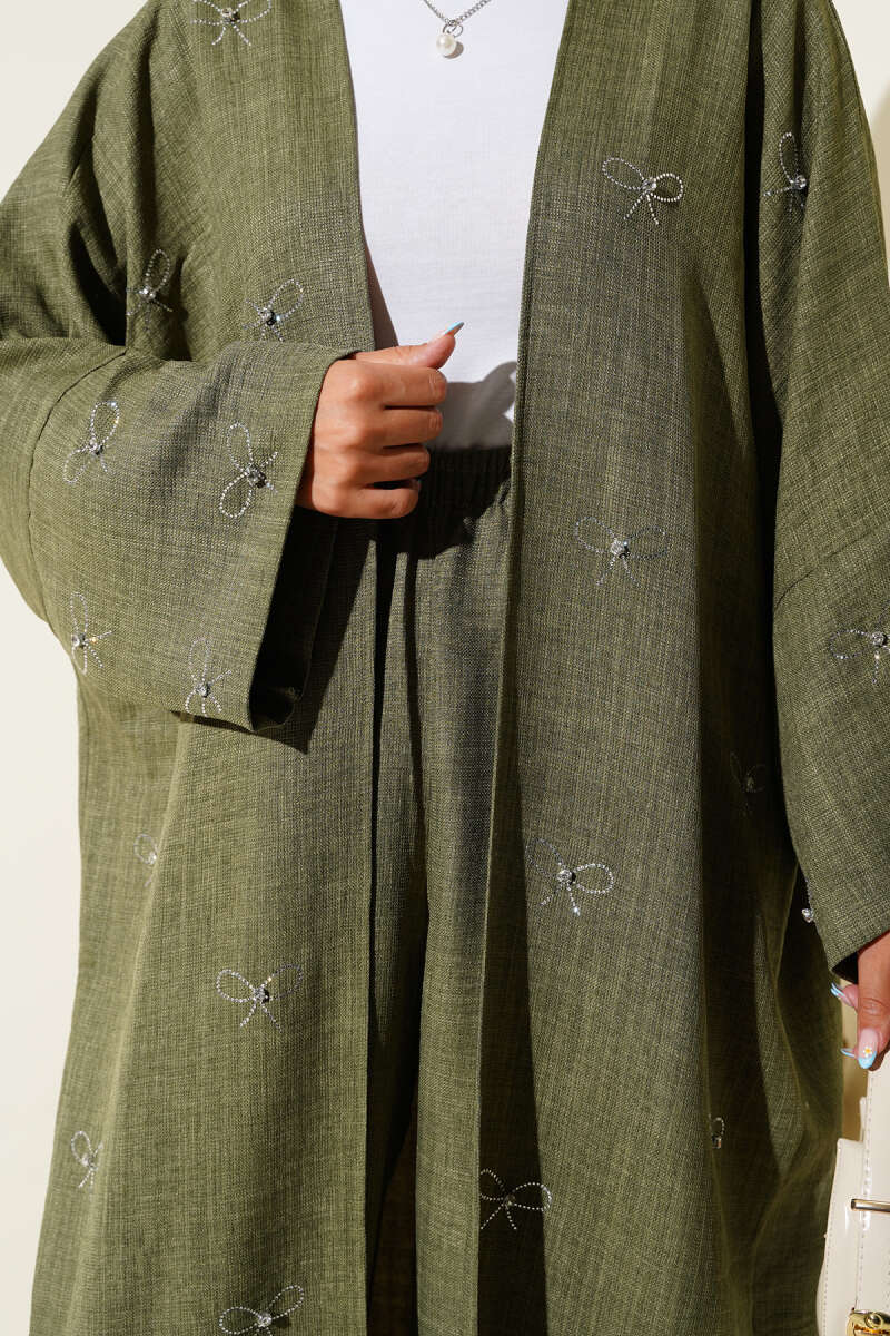 Taş Fiyonklu Kimono İkili Takım Haki