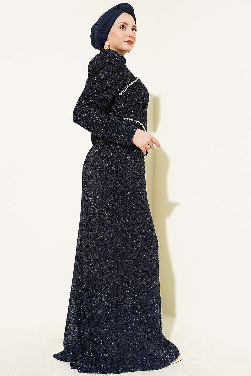 Kemerli Düğmeli Geniş Paça Pantolon Lacivert