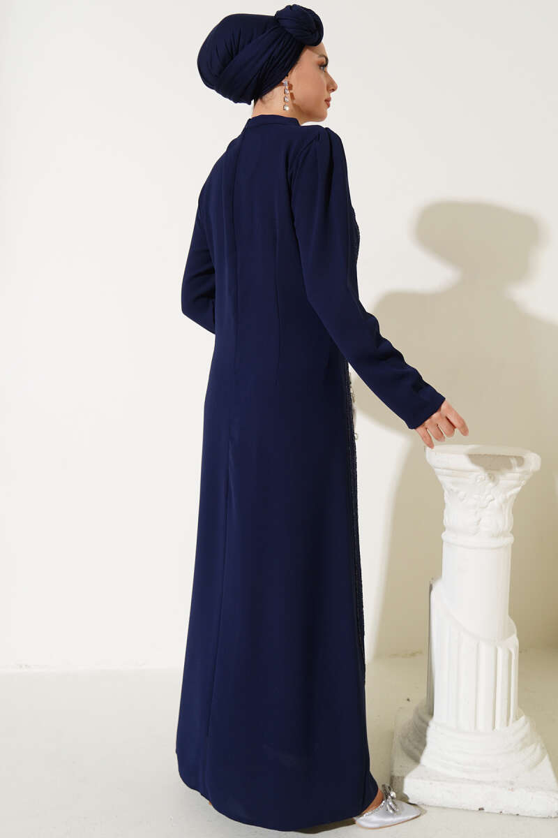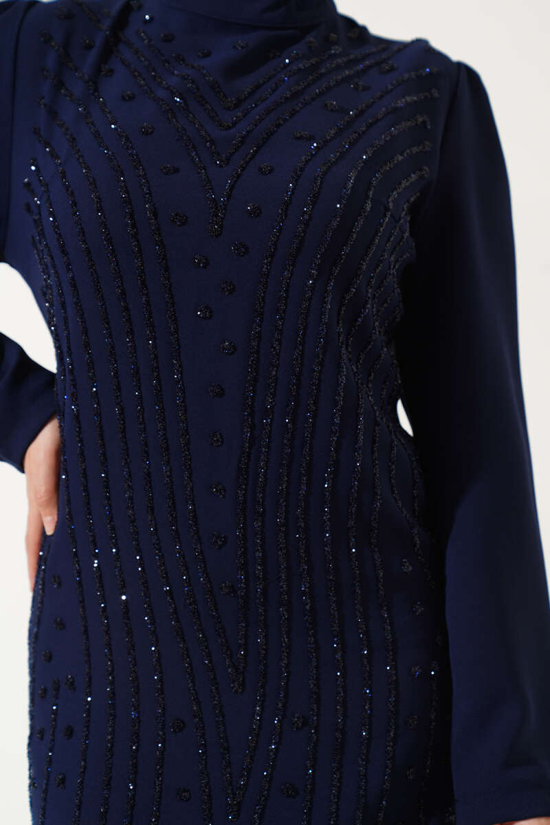 Pelerin Detaylı Düğmeli Triko Elbise Lacivert