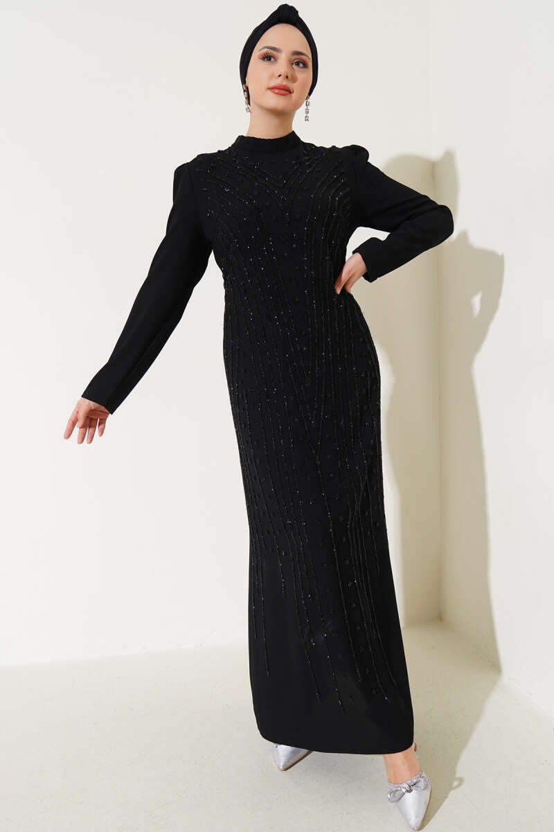 Sıra Taş Detaylı Loyşa İkili Takım Siyah