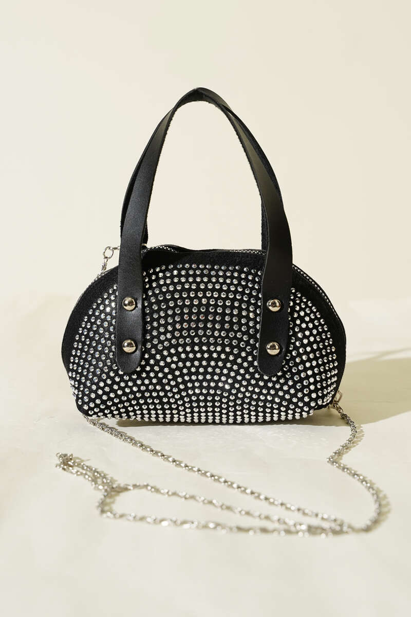Taş İşlemeli Mini Çanta Taba