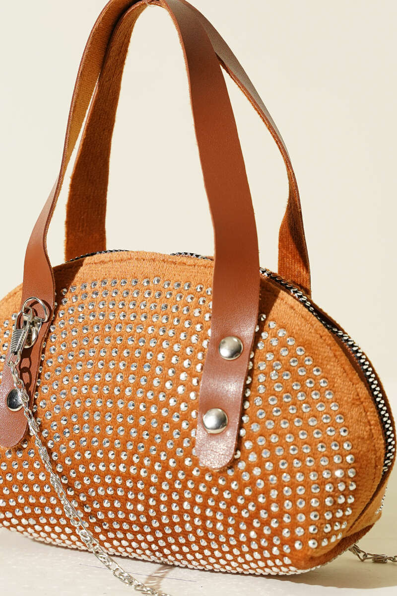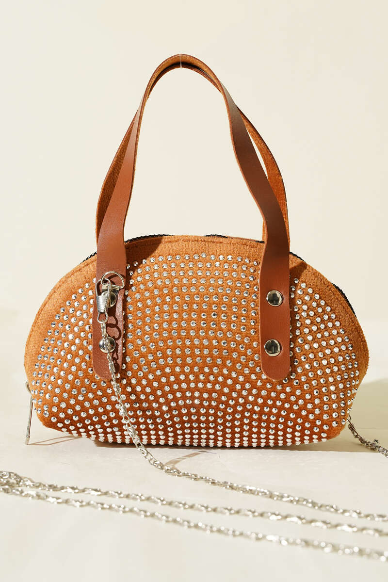 Taş İşlemeli Mini Çanta Taba