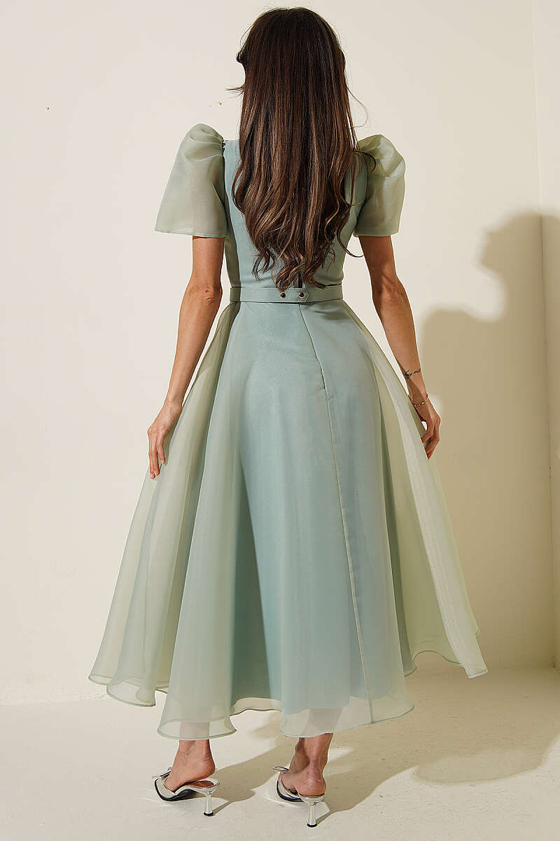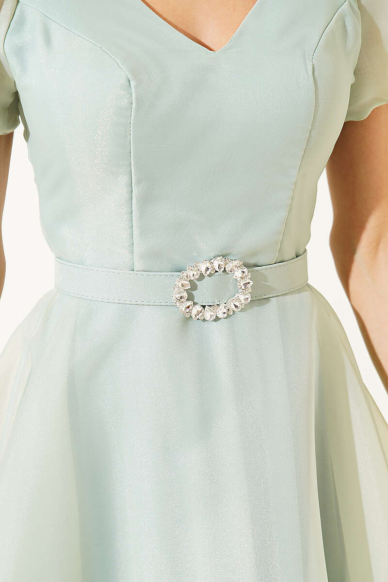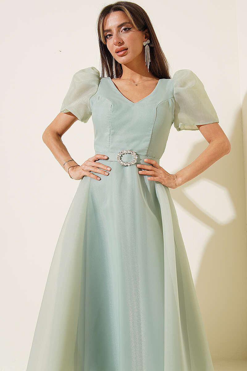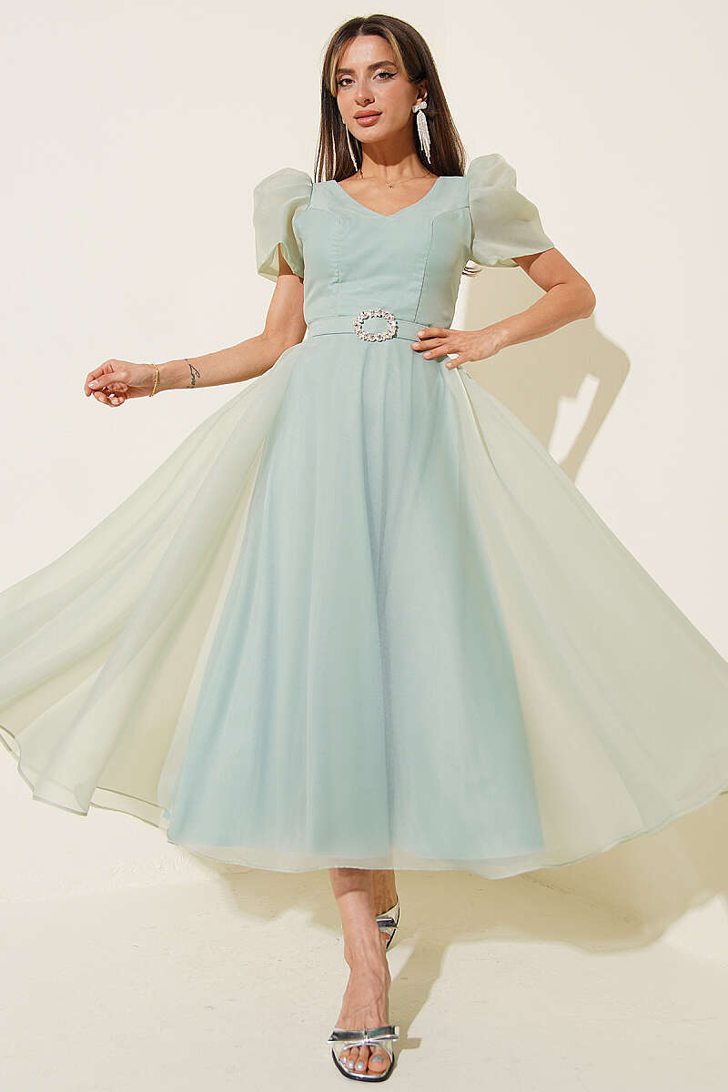 Taş Kemerlli Prenses Abiye Elbise Mint